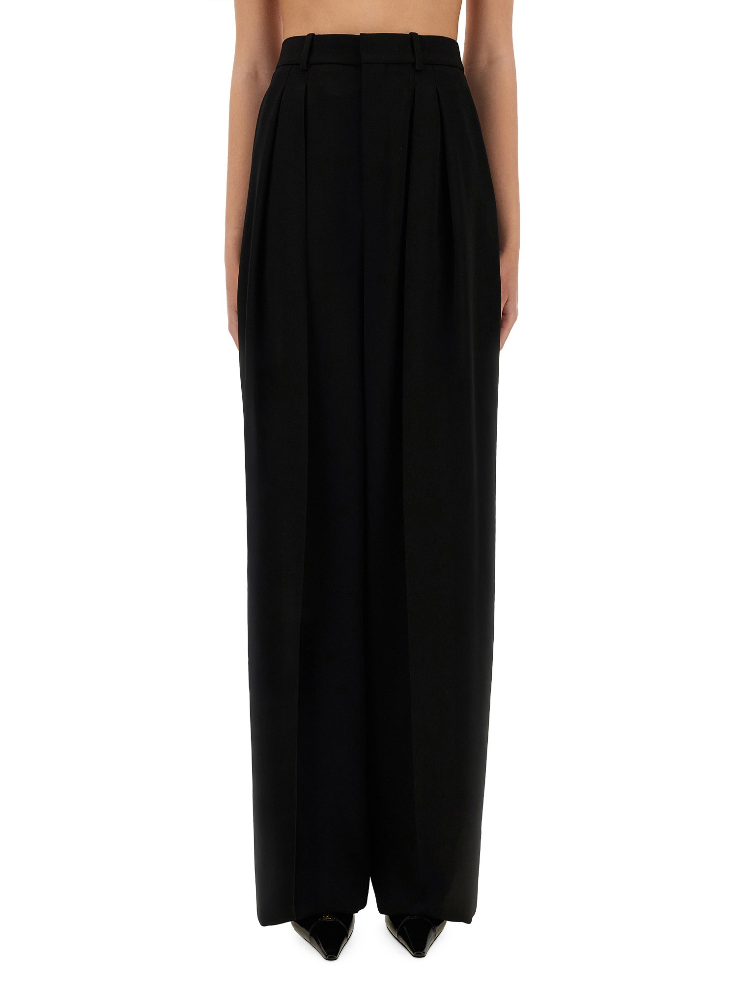 PANTALONE A GAMBA AMPIA IN GRAIN DE POUDRE