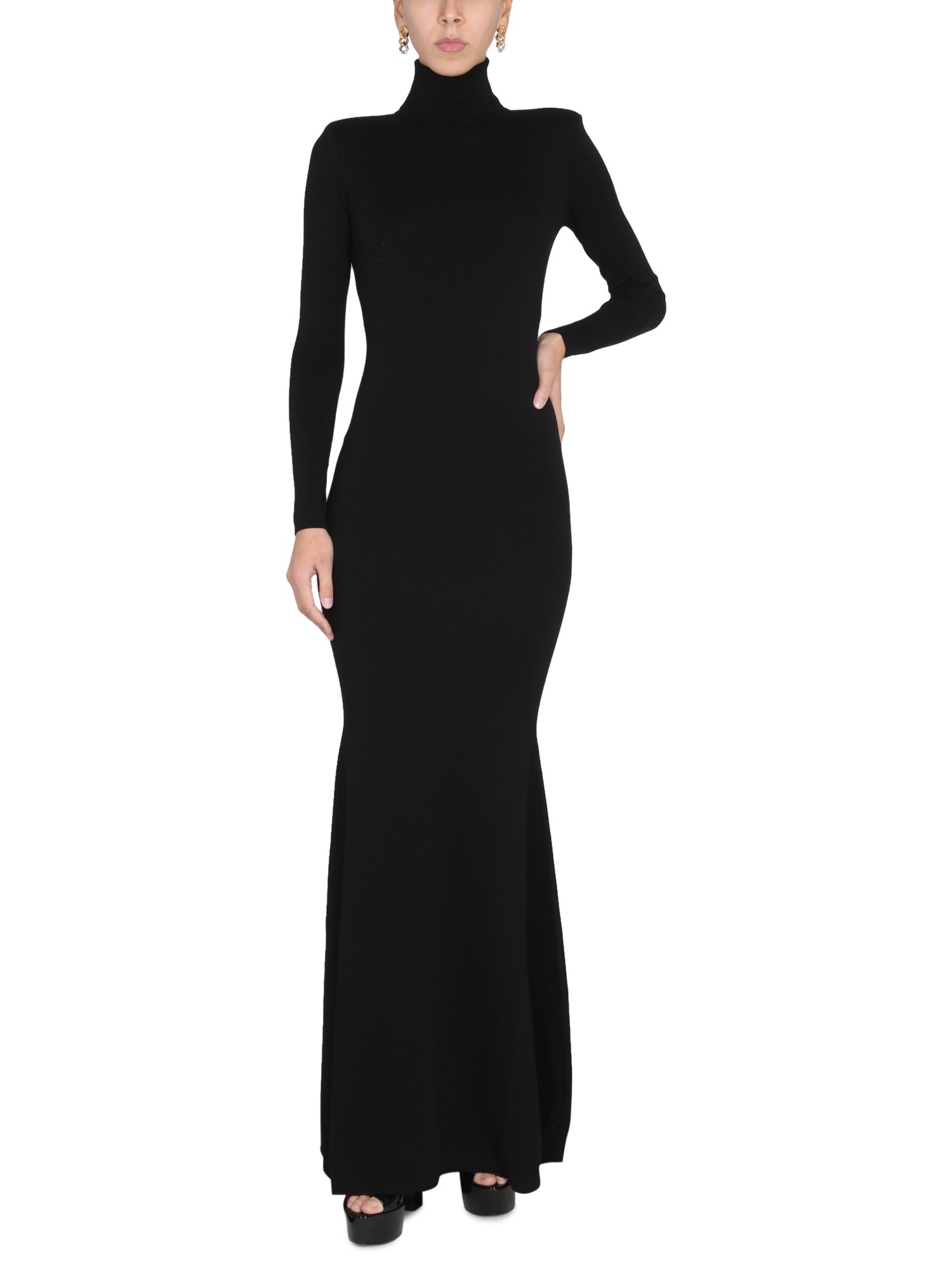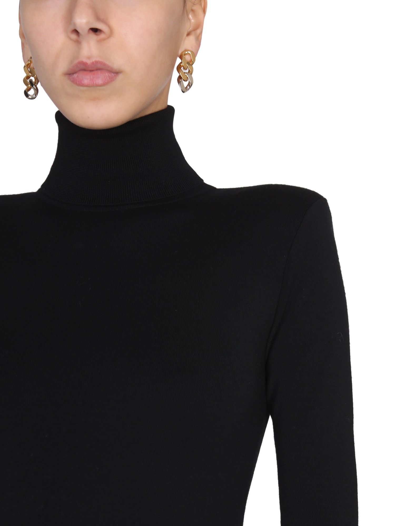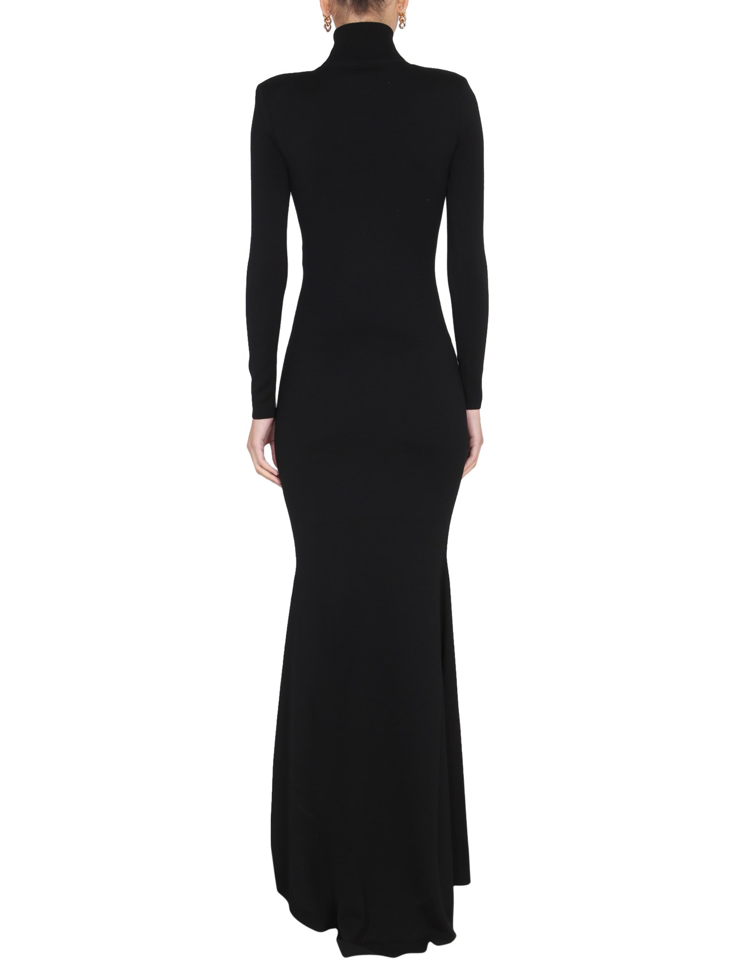 Questo abito nero di Saint Laurent è realizzato in lana sostenibile ed è progettato per essere aderente in vita e aderente anche sui fianchi. Questo abito ha un collo a collo alto, uno stile molto popolare in questa stagione. L'abito slim-fit in lana sostenibile a collo alto è realizzato al 100% in lana sostenibile, il che significa che è eco-compatibile.