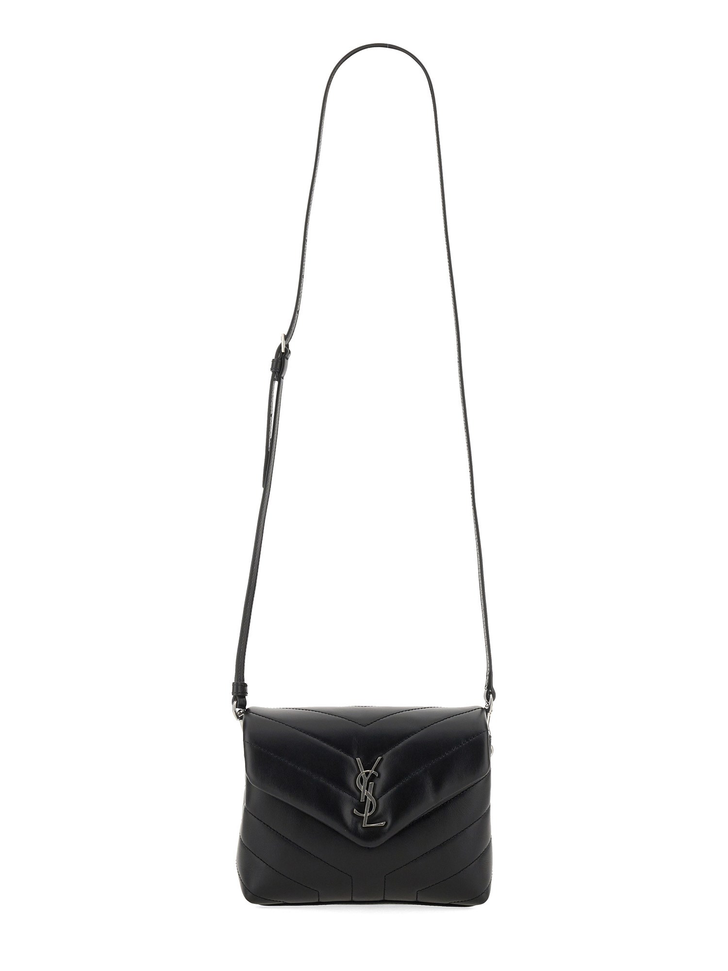 Vi presentiamo la Loulou Toy Strap Bag in pelle trapuntata a "Y". Questa morbida borsa con patta frontale è dotata di una tracolla in pelle rimovibile, dell'iconico emblema Cassandre in metallo e di un'elegante cucitura a "Y" matelassé. Vanta un design versatile con opzioni di tracolla convertibili. La borsa offre praticità con una tasca piatta centrale, una tasca con cerniera e tre scomparti per carte di credito. Realizzata con un'attenzione meticolosa ai dettagli, è dotata di minuteria in nichel ossidato e di una lussuosa fodera in gros-grain. Le dimensioni sono 20 x 14 x 7,5 cm e la tracolla è lunga 57 cm. Realizzata in pelle di vitello al 100%, questa borsa è un accessorio elegante e funzionale.