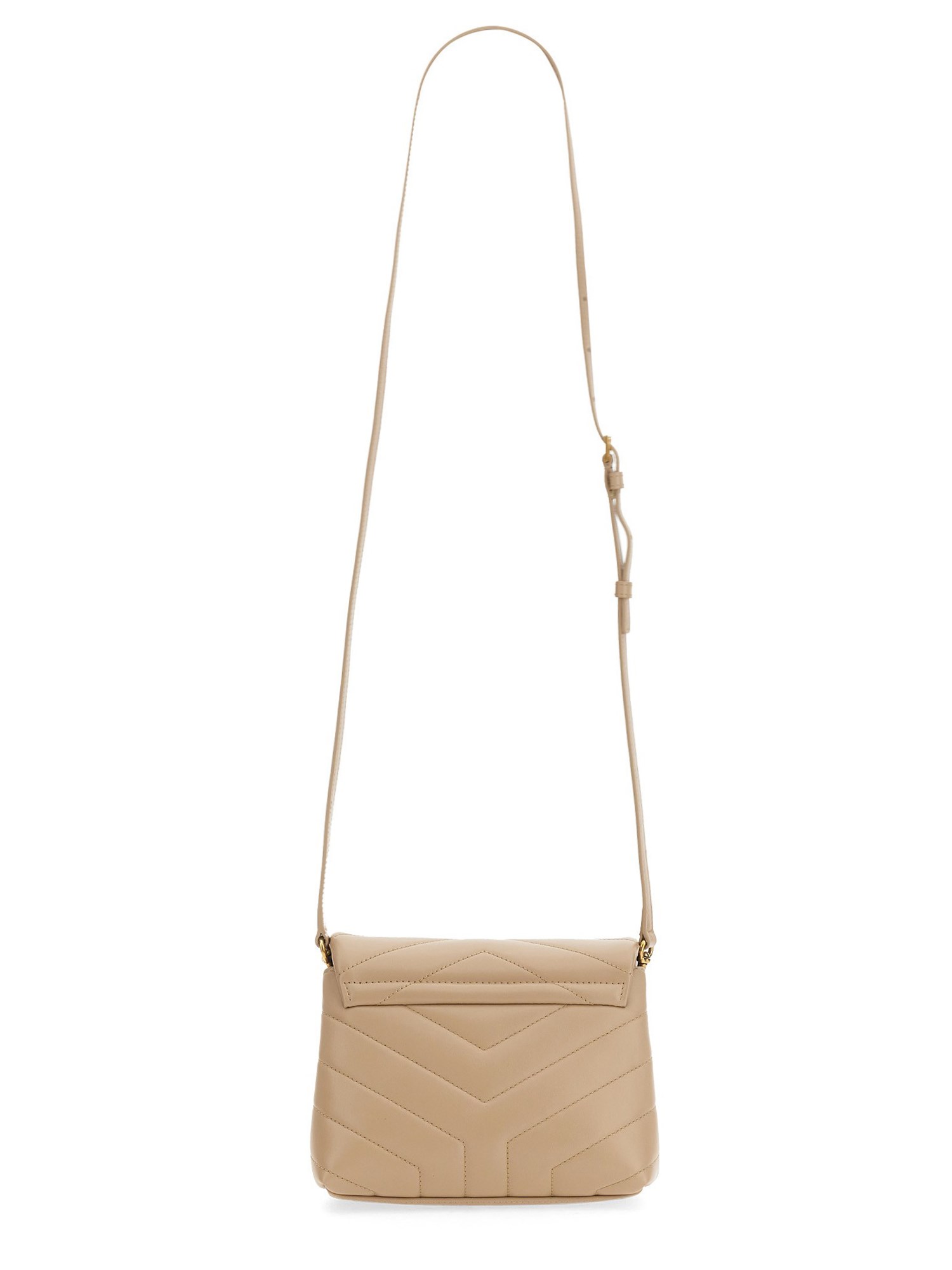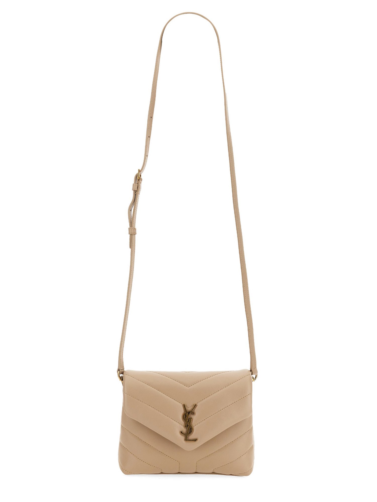 La borsa Loulou Toy di Saint Laurent è un'opzione elegante e moderna per riporre i vostri oggetti essenziali. Realizzata in pelle, questa borsa è elegante e resistente. Presenta un interno foderato con due scomparti principali, tre scomparti per carte e una tasca con cerniera. La borsa è inoltre dotata di una tracolla regolabile e rimovibile e di una placca frontale con logo.