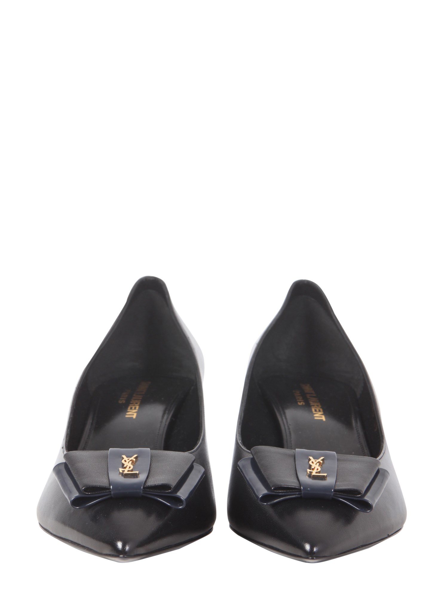 - DOPPIO FIOCCO PIATTO E MONOGRAMMA YSL IN METALLO