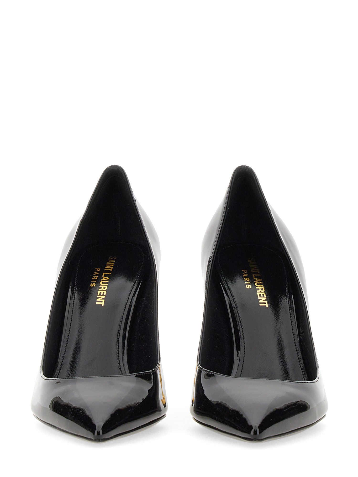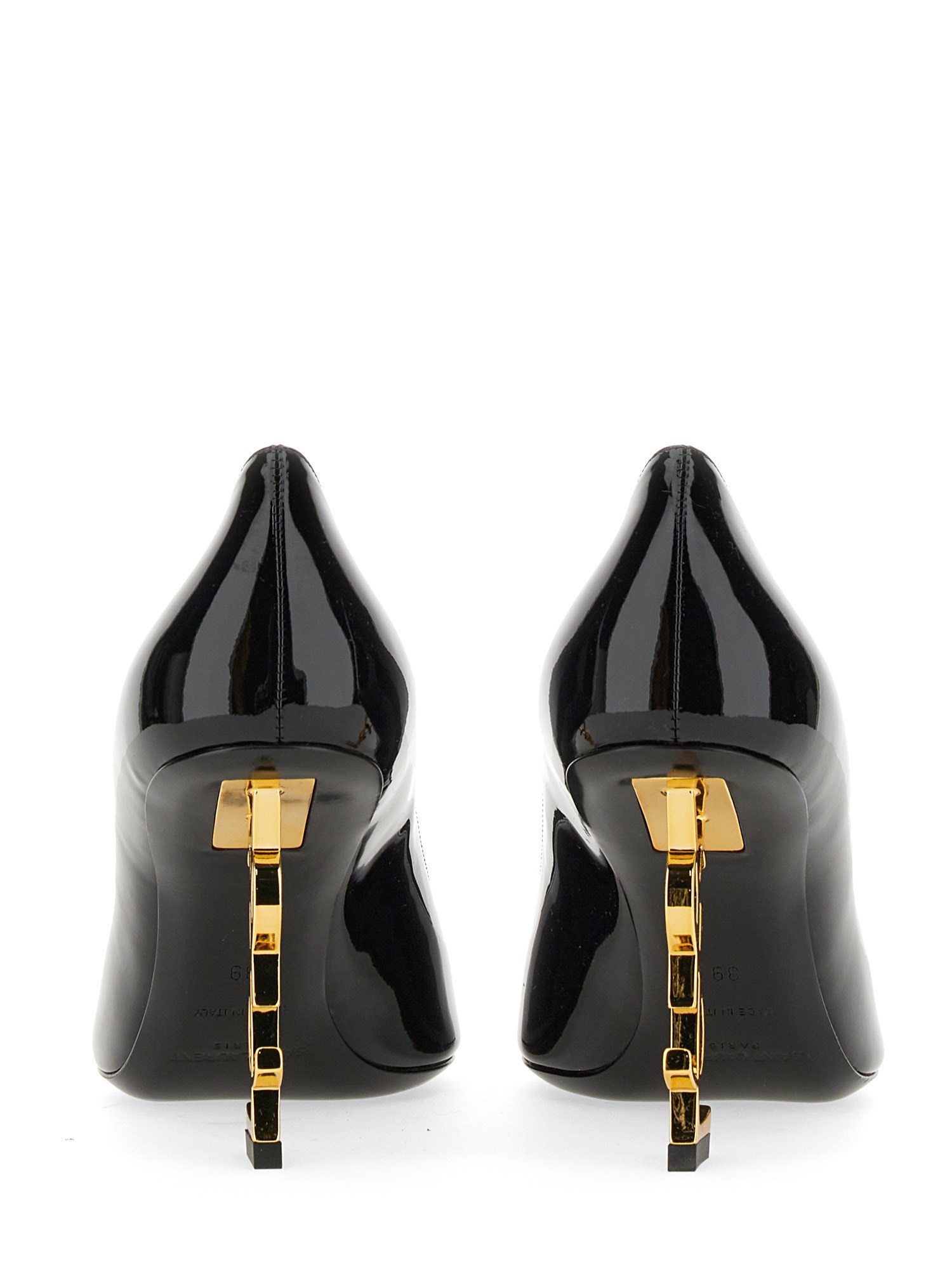 - TACCO: 8.5 CM- TOMAIA IN PELLE- TACCO STRUTTURATO IN METALLO DORATO ANTICATO CON INIZIALI YSL- 100% PELLE- MADE IN ITALY