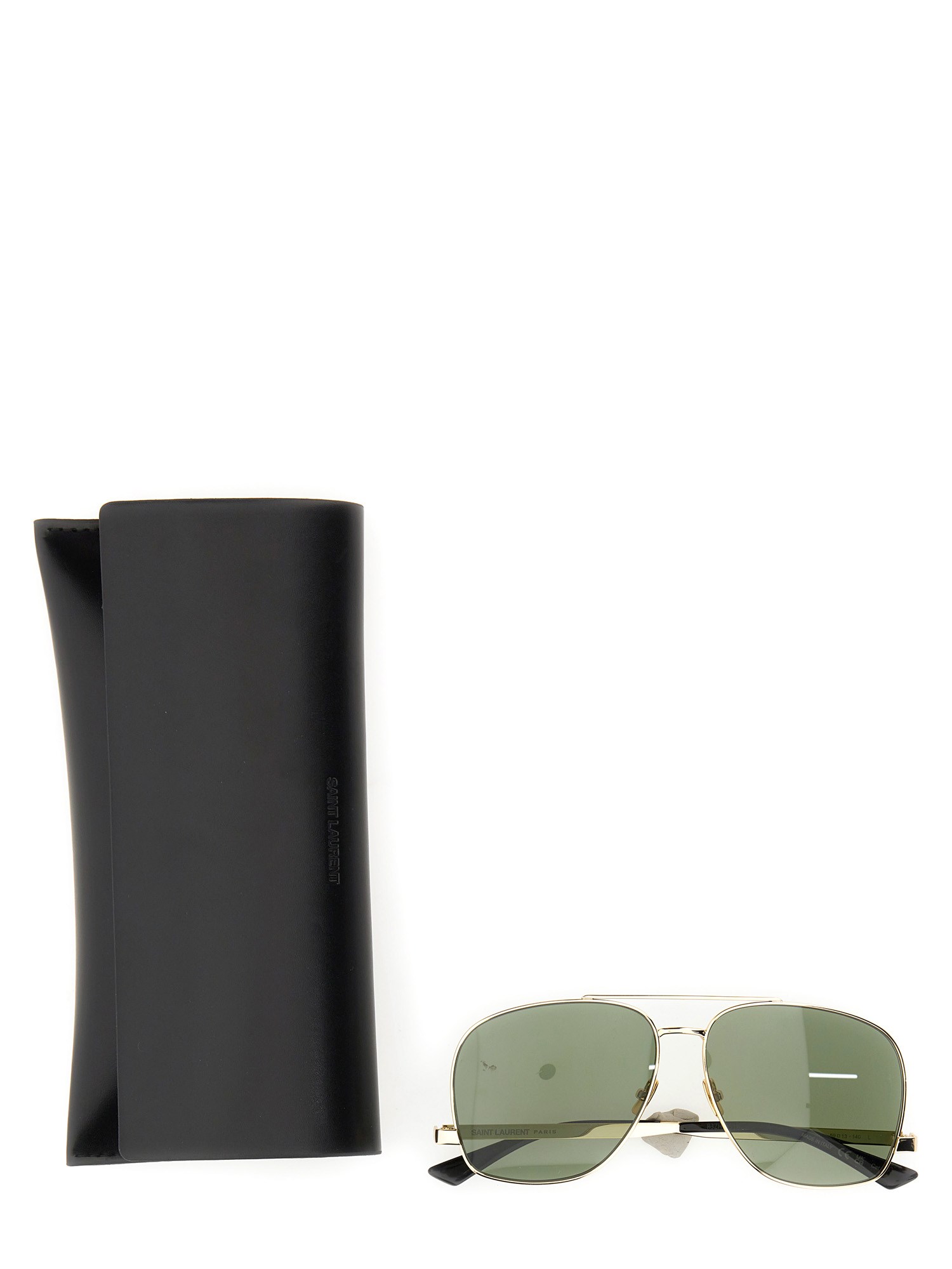 Scoprite questi occhiali da sole con montatura da aviatore in metallo, doppio ponte, aste basse e logo Saint Laurent inciso. Offrono una protezione UVA/UVB del 100% e sono compatibili con le lenti correttive, garantendo stile e funzionalità.