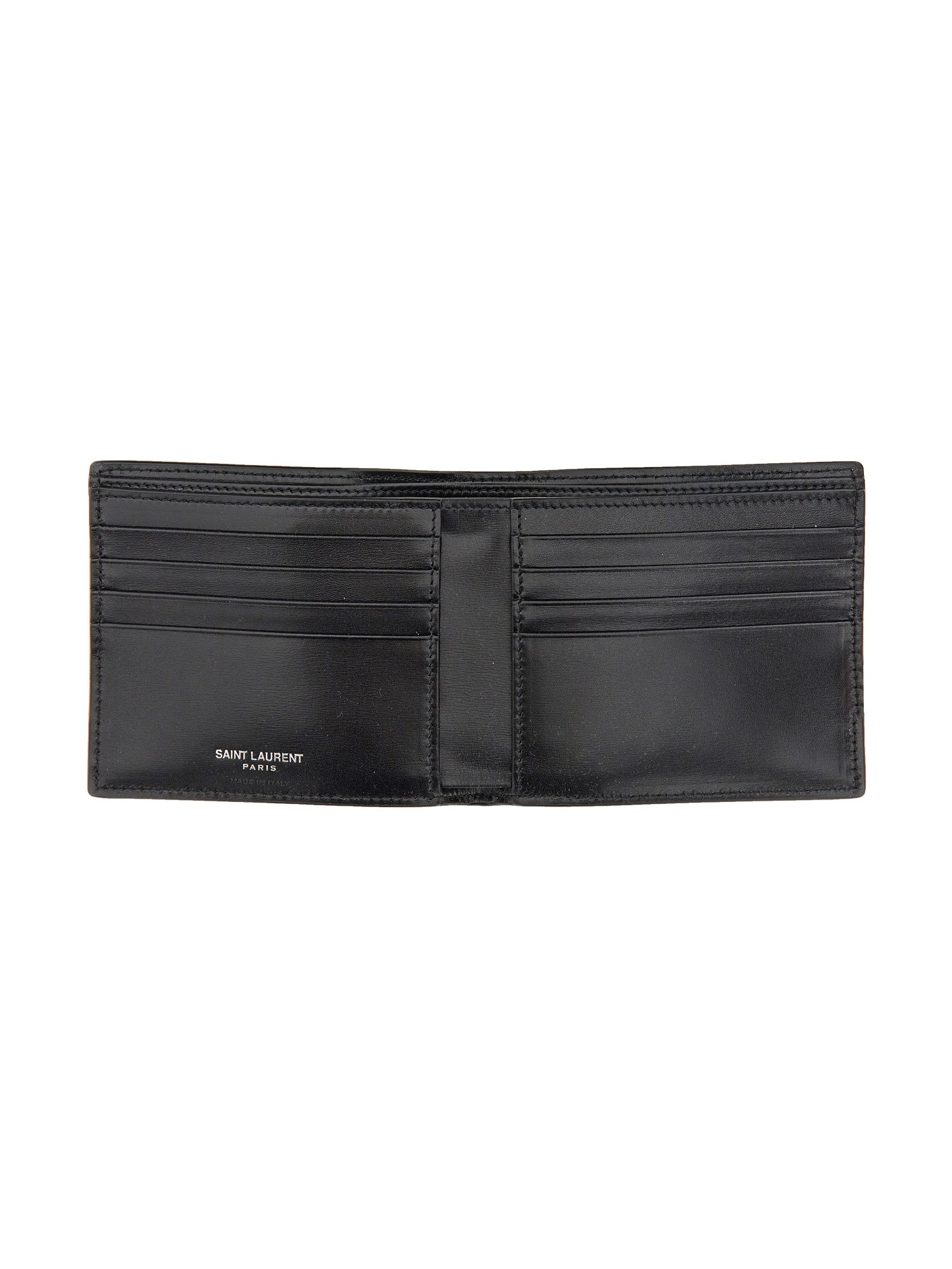 Il design contemporaneo e la qualità costruttiva del portafoglio in pelle "Eastwest" della maison Saint Laurent lo rendono un accessorio perfetto. Questo portafoglio è dotato di più scomparti per carte, scomparti interni per banconote e due tasche verticali. Il portafoglio è dotato di un logo frontale in metallo argentato.