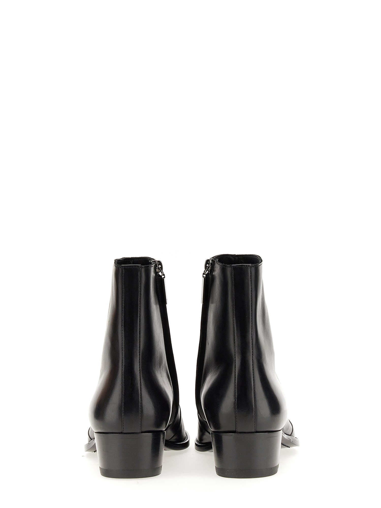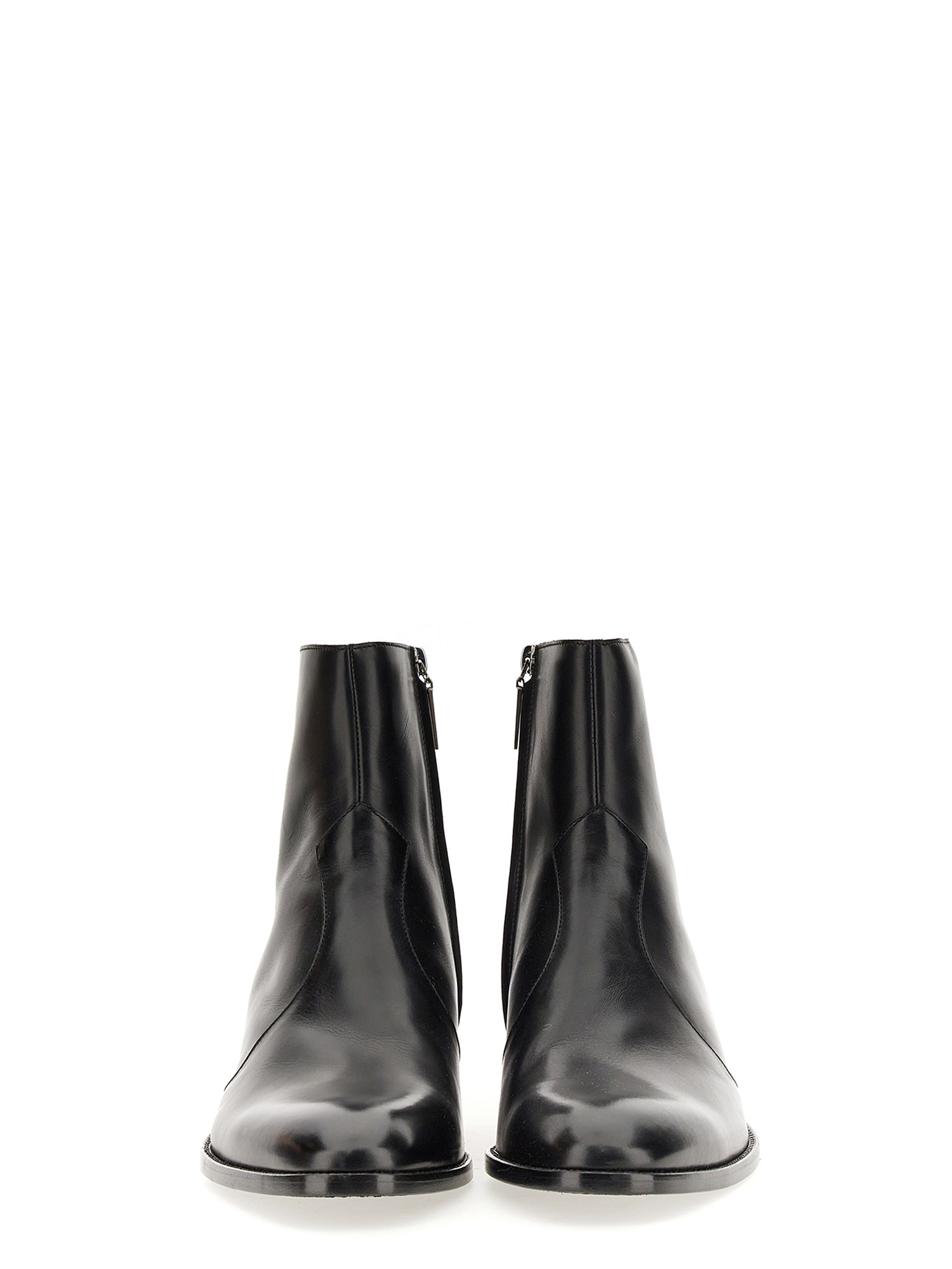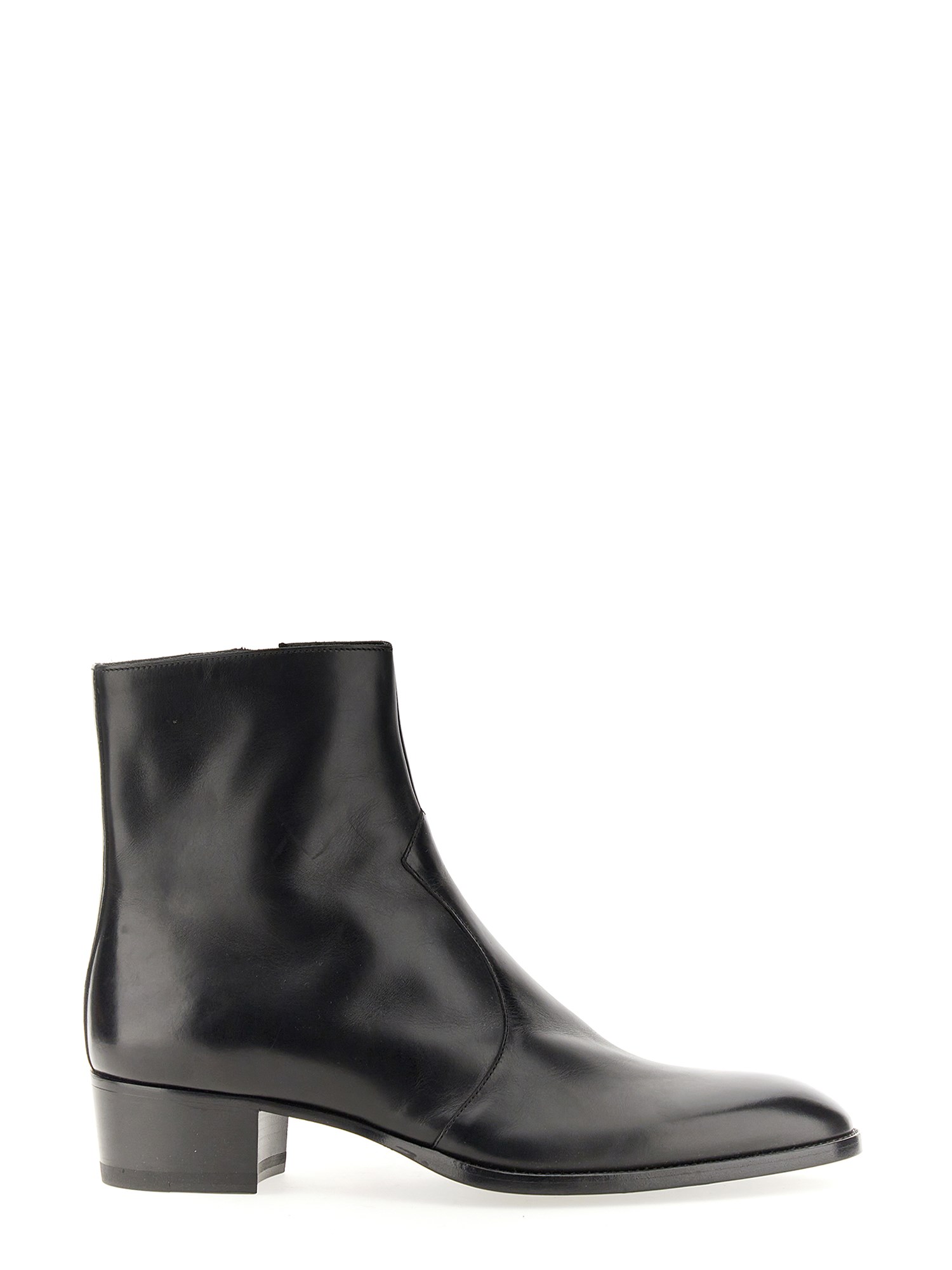 Lo stivaletto Wyatt della maison Saint Laurent è morbido, resistente e realizzato a mano per offrire a chi lo indossa una calzata perfetta. Presenta una suola in cuoio, tomaia in imputures, chiusura con cerniera laterale, punta arrotondata e tacco laminato. Gli stivali hanno una finitura lucida e un tacco impilato per dare una sensazione elevata.