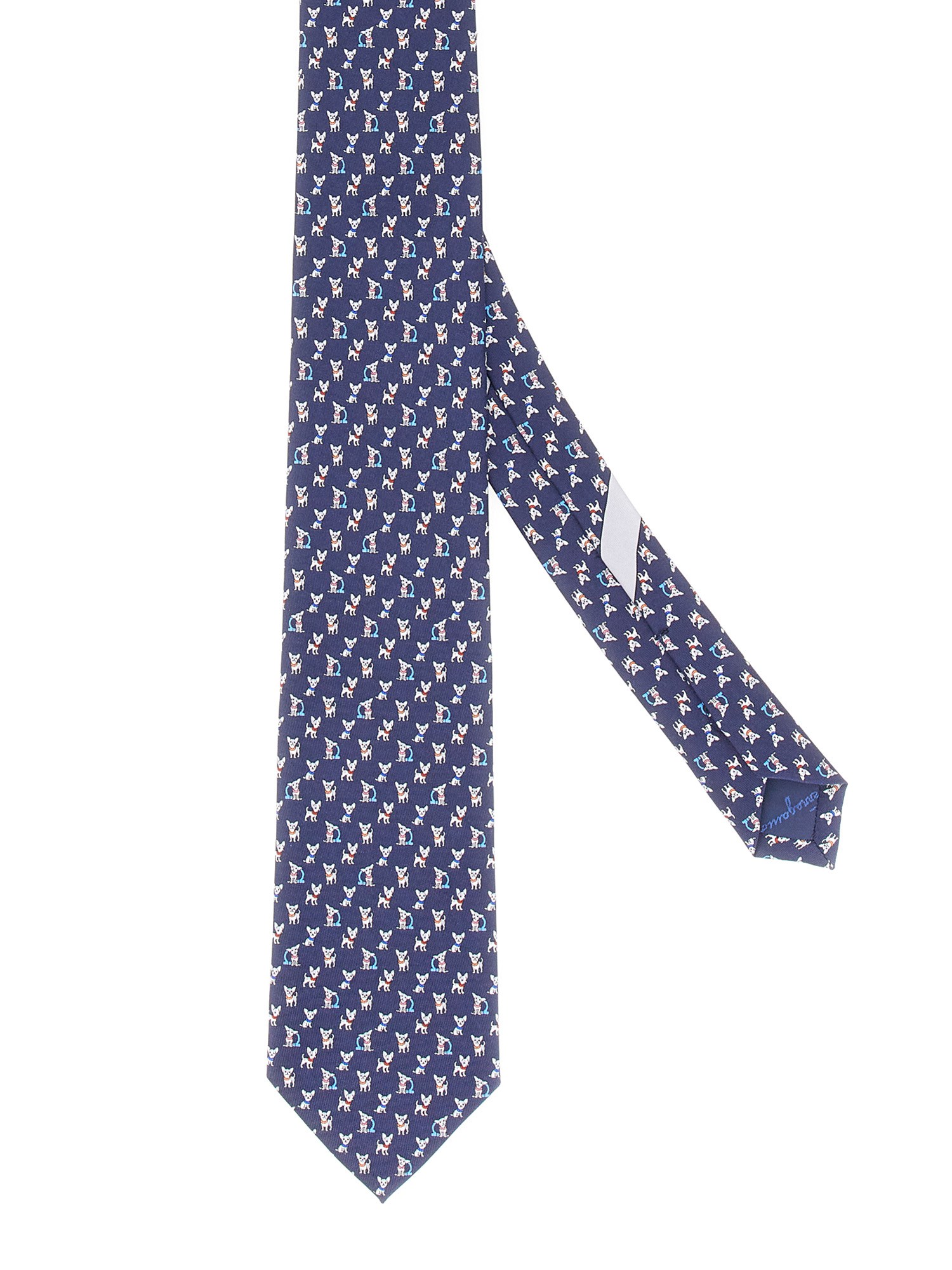 Questa cravatta di Ferragamo è un omaggio all'amore per i cani. Con le fattezze del cucciolo sul davanti e un design semplice, questa cravatta è un must per ogni amante dei cani. La cravatta è il regalo perfetto per chi ama gli animali domestici e ricorderà loro il loro migliore amico. Il tessuto lussuoso di questa cravatta è l'accessorio perfetto per i proprietari di cani sofisticati che amano il lusso. Questa cravatta garantirà al vostro cane un aspetto da vero gentiluomo.