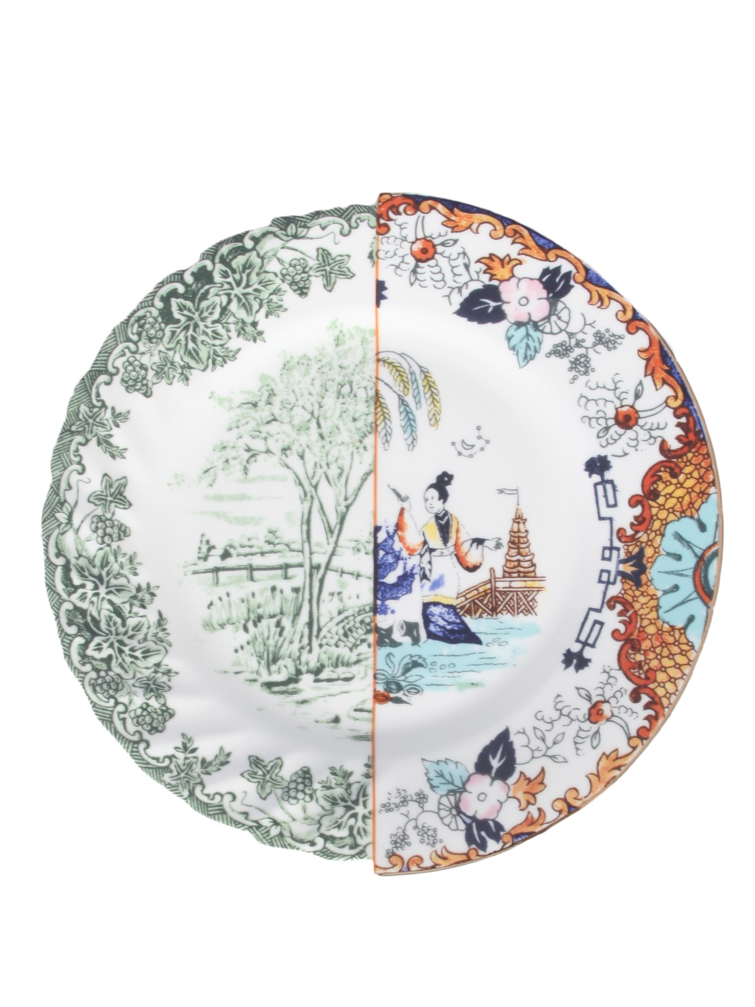 - PIATTO PIANO- LAVORAZIONE HYBRID EAST VS WEST- DESIGN CTRLZAK- DIMENSIONI: ø 27.5 X A 2.3 CM- 100% PORCELLANA BONE CHINA
