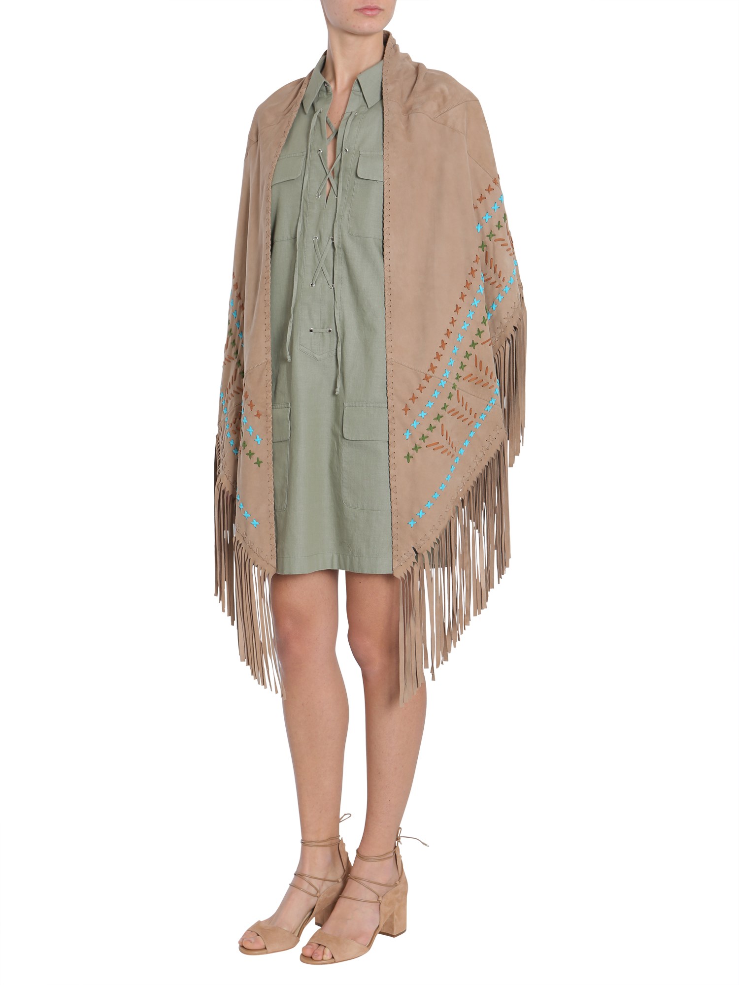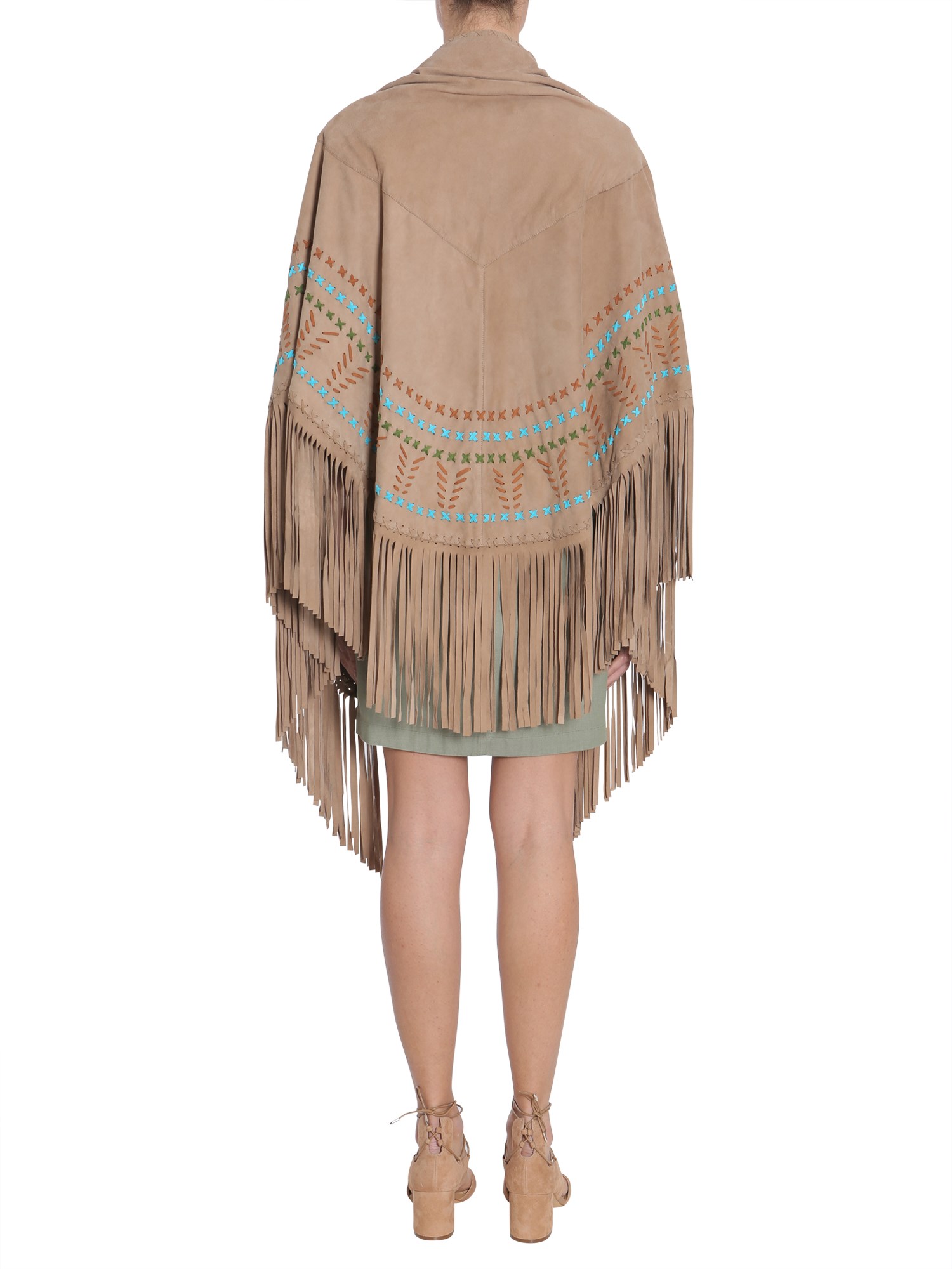 - RICAMI A CONTRASTO- FRANGE APPLICATE AL FONDO- INTERNO FODERATO- 100% PELLE- LA MODELLA INDOSSA UNA TAGLIA UNICA