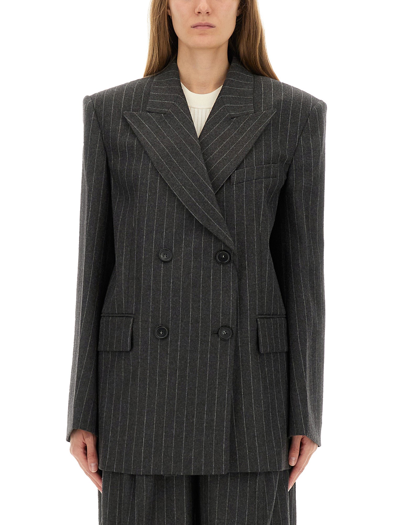 - OVERSIZE FIT- 44% Virgin wool, 40% Viscose, 14% Polyamide, 2% Elastane- LA MODELLA È ALTA 180 CM E INDOSSA LA TAGLIA 40 IT
