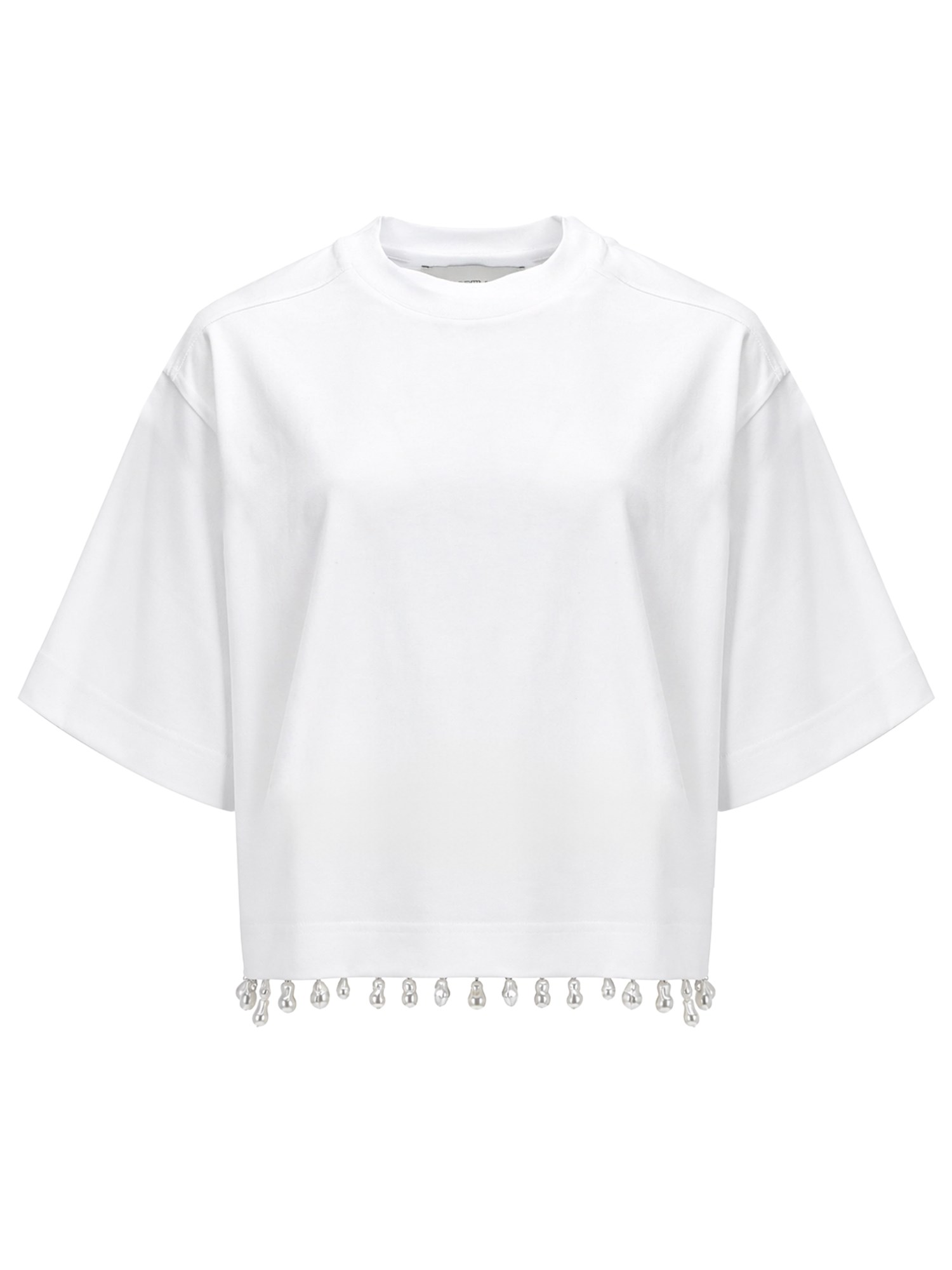 T-SHIRT "PALMAS" IN COTONE CON PERLE RICAMATE