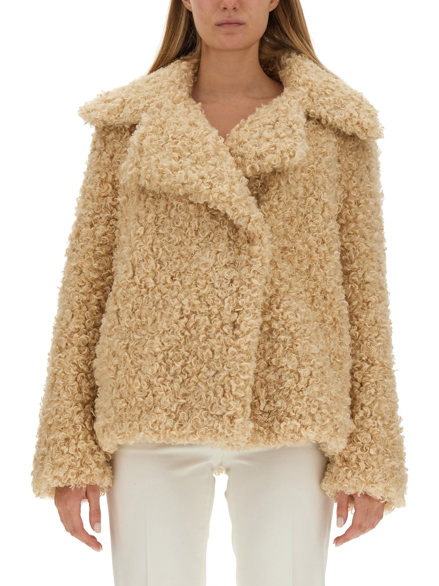 Questo cappotto corto oversize di Stella McCartney è realizzato in tessuto teddy cruelty-free con una texture aderente e arricciata. Il colletto ampio e le maniche lunghe creano una silhouette contemporanea.