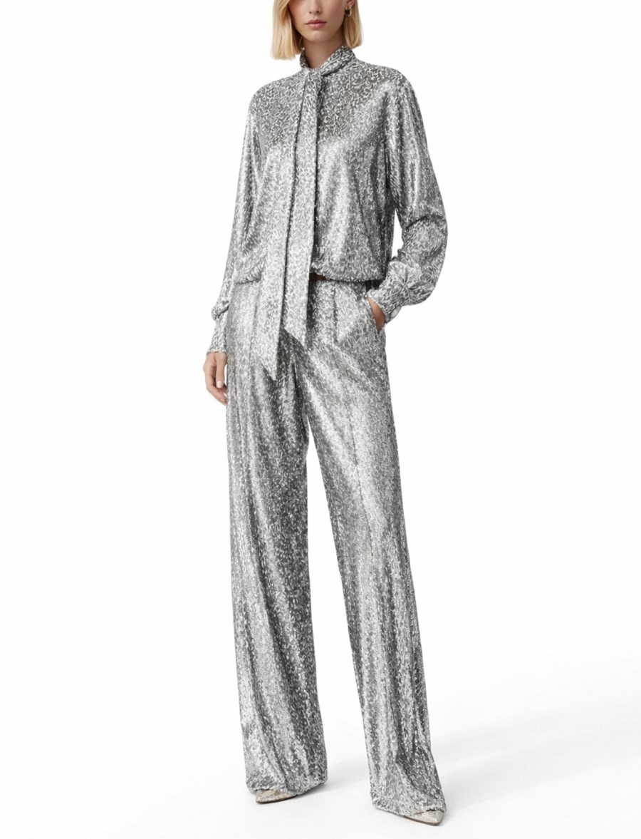 - STRAIGHT LEG- 68% POLYESTER 32% SILK- MADE IN Hungary- LA MODELLA È ALTA 180 CM E INDOSSA LA TAGLIA 40 IT