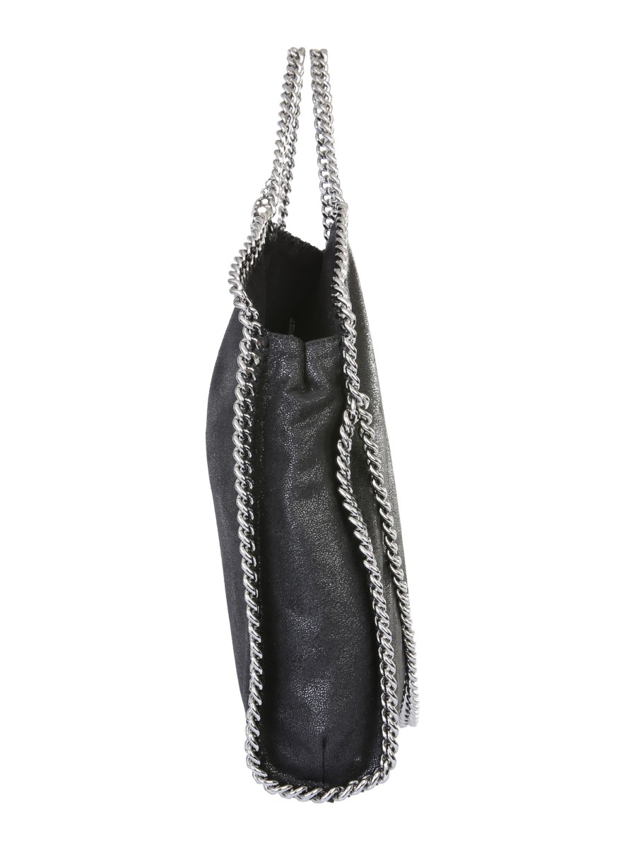 Volete portare a casa i vostri oggetti essenziali con stile? La nostra borsa Falabella di Stella McCartney è perfetta per voi! È realizzata in materiale resistente e robusto con parti metalliche in finitura argento. Presenta un doppio manico a catena, chiusura con bottone magnetico, profilo a catena con taglio a diamante e una tasca interna applicata.