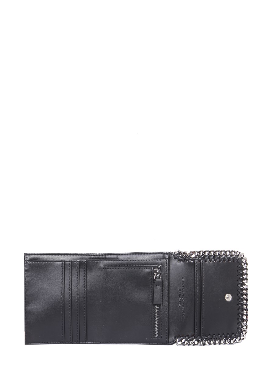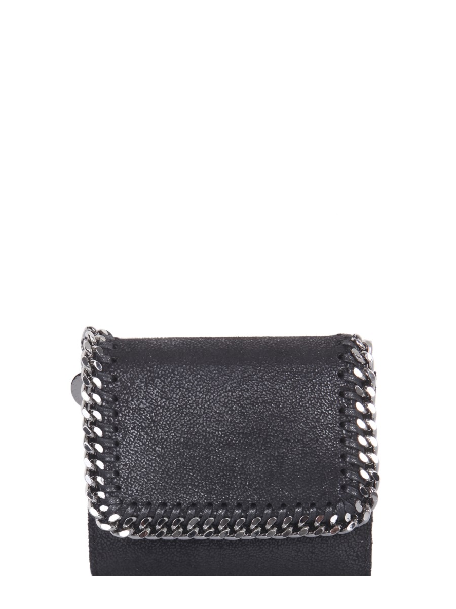 È ora di sbarazzarsi di quel portafoglio ingombrante che contiene a malapena gli oggetti essenziali. Questo portafoglio piccolo Falabella di Stella McCartney è perfetto per chi vuole viaggiare leggero ed è minimalista. È dotato di una tasca per monete con cerniera, una tasca per banconote e sei scomparti per carte. Il portafoglio è dotato di chiusura con bottone a pressione e profilo a catena con taglio a diamante in finitura argento.