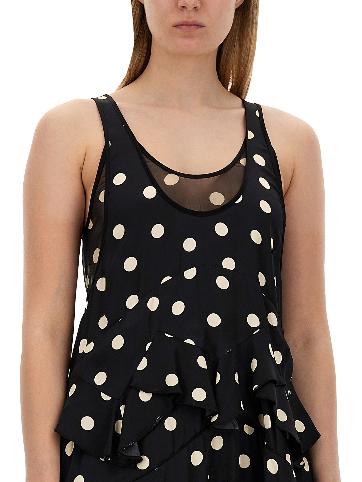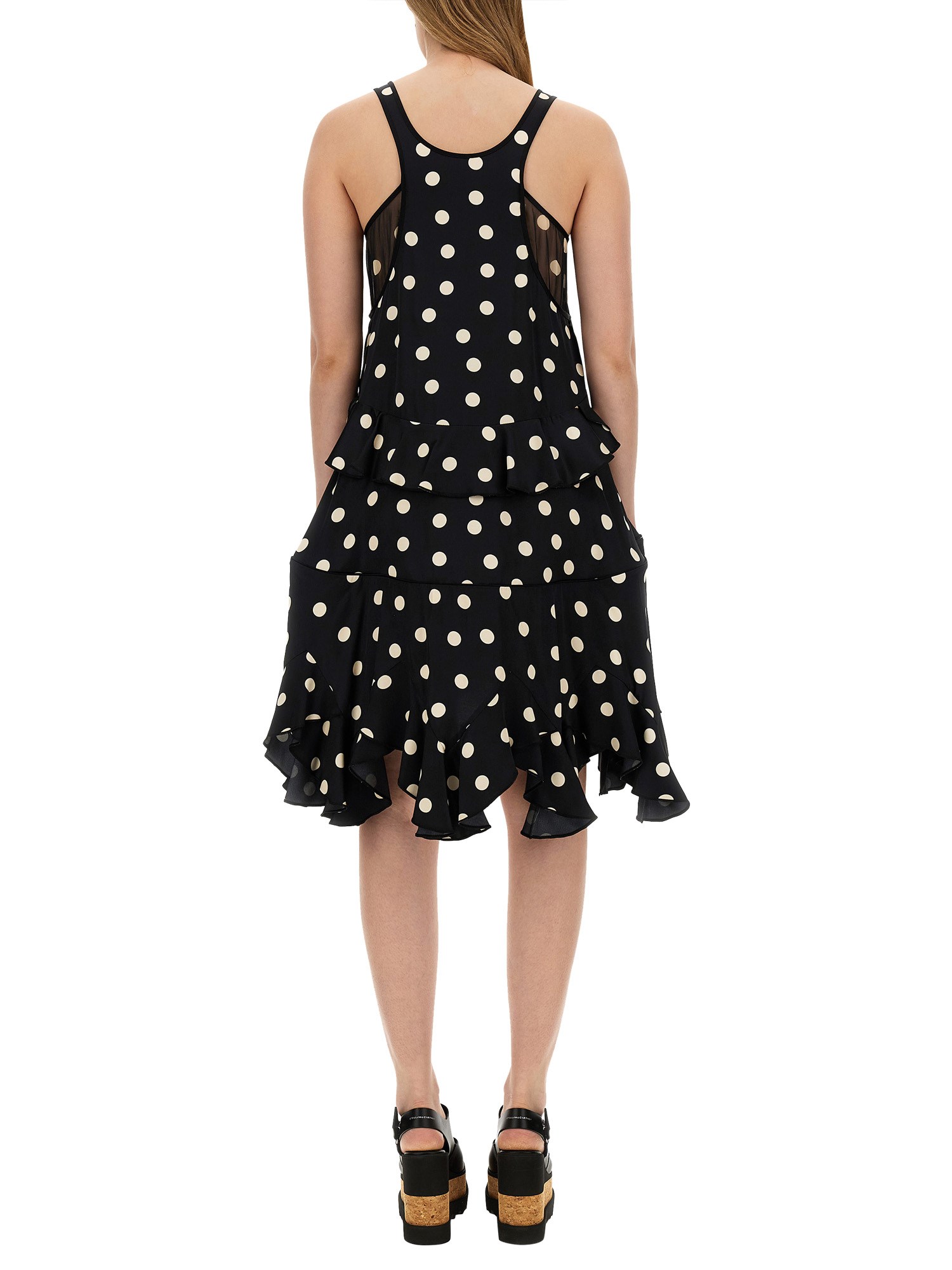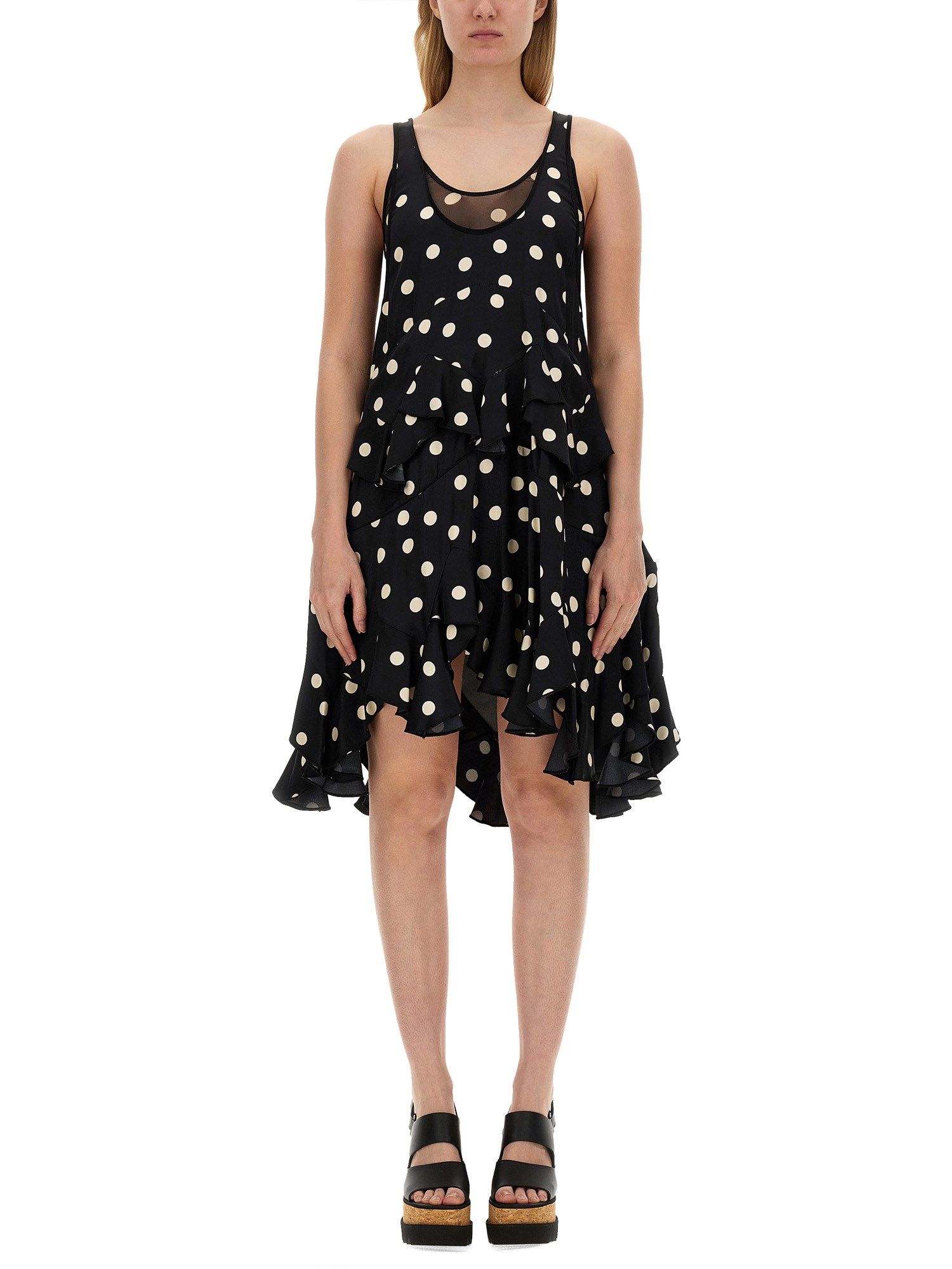 Questo elegante mini abito a pois di Stella McCartney è caratterizzato da scollo rotondo, schiena a raggiera e design a strati increspati, che creano una lusinghiera silhouette A-line. Il motivo a pois aggiunge un tocco divertente e femminile a questo abito versatile, rendendolo perfetto sia per le occasioni casual che per quelle semi-formali. Grazie alla sua vestibilità comoda e al design di tendenza, questo abito è un'aggiunta indispensabile a qualsiasi guardaroba alla moda.