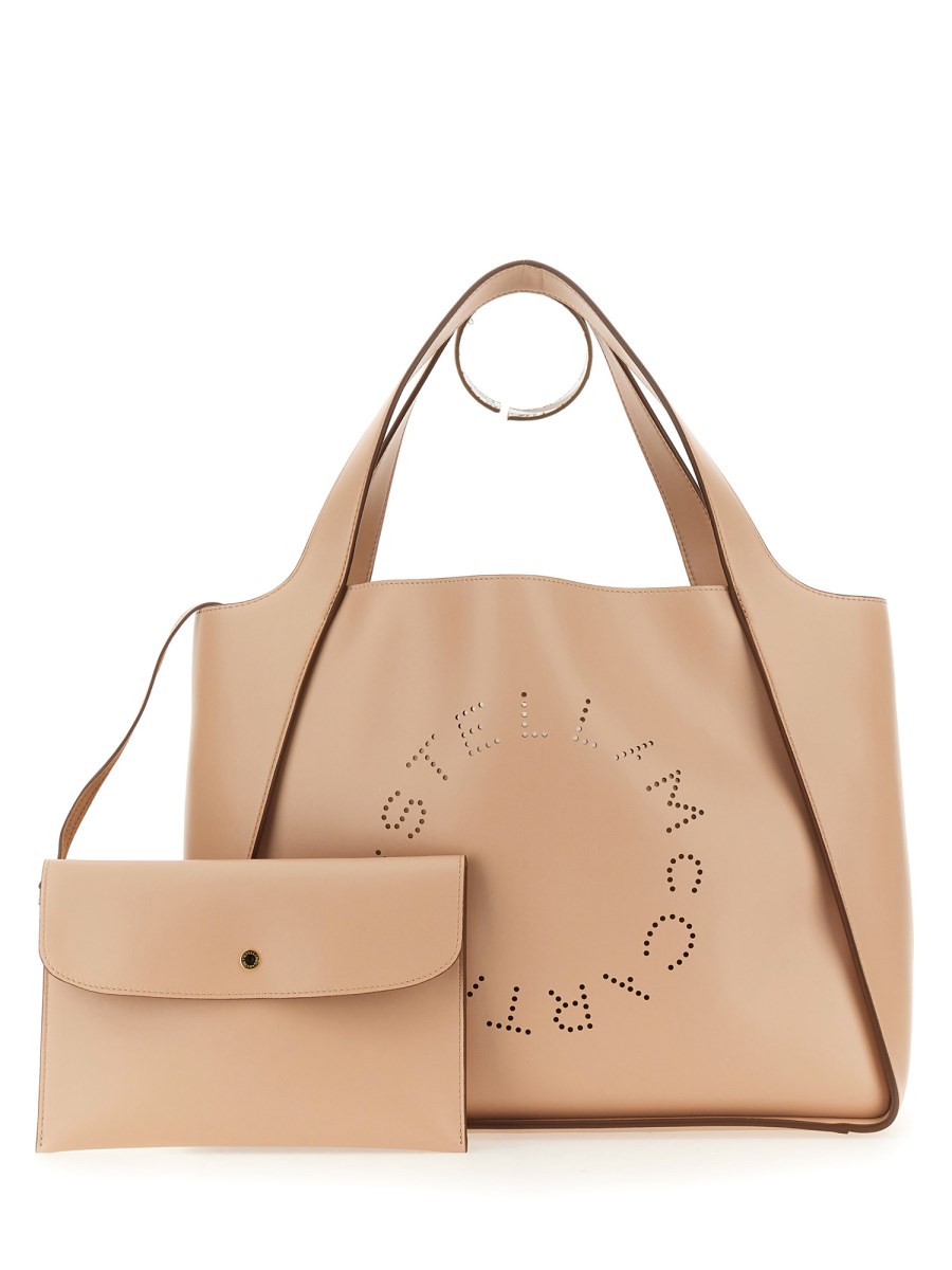 Caratterizzata dal logo circolare Stella McCartney sulla parte anteriore, questa tote bag Logo è amata per il suo design evasivo e senza tempo. La tote bag è realizzata consapevolmente in Alter Mat - la lussuosa alternativa vegana alla pelle animale - con un sacchetto staccabile all'interno per proteggere i vostri oggetti essenziali. Questa spaziosa borsa è ideale per le avventure da città a campagna.
