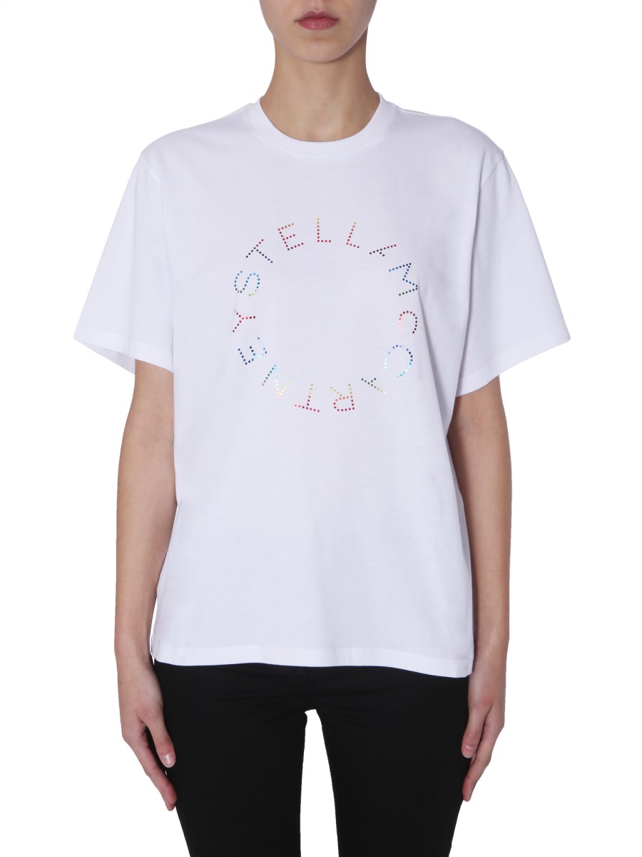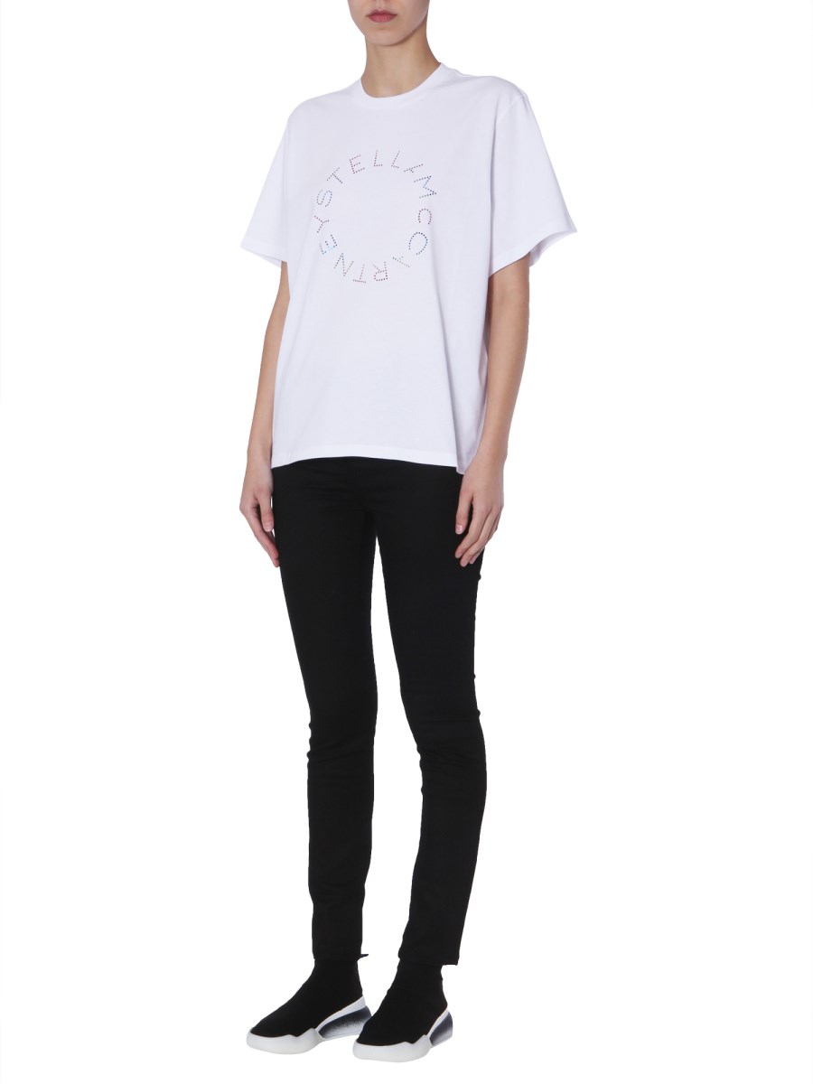 - GIROCOLLO- MANICHE CORTE- STAMPA LOGO- OVERSIZE FIT - 100% COTONE - LA MODELLA INDOSSA LA TAGLIA 38