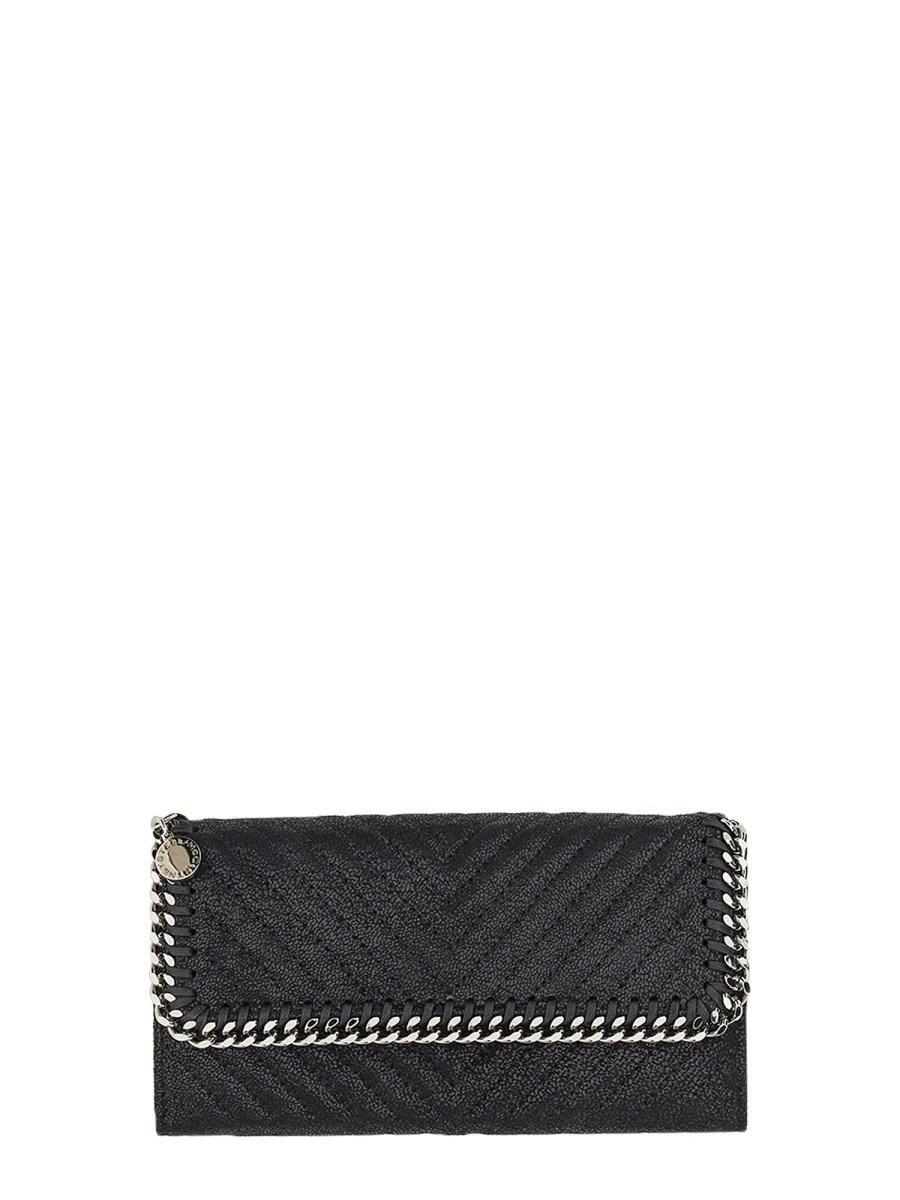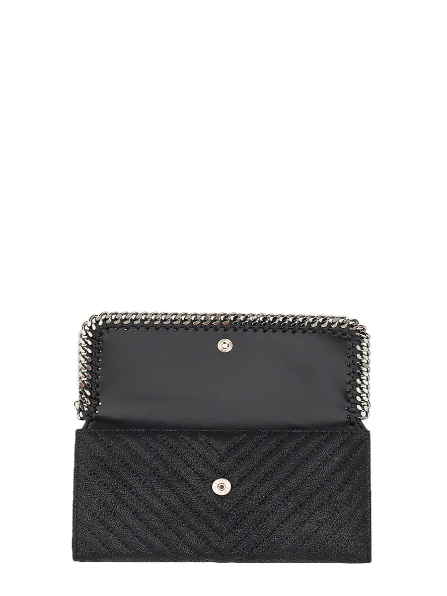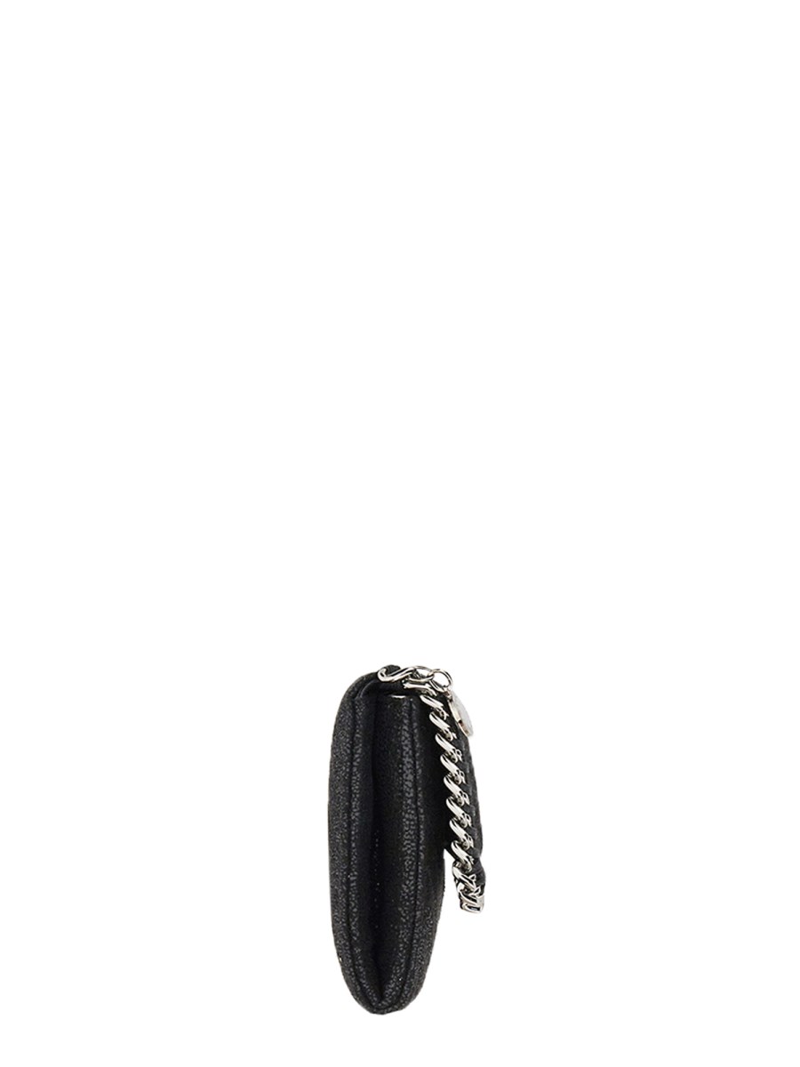 Questo portafoglio pieghevole di Stella McCartney è progettato per proteggere le carte e le banconote più preziose. Un bottone a pressione con chiusura a patta e profilo a catena con taglio a diamante, una tasca per documenti, due tasche per banconote, una tasca con zip per monete e sei scomparti per carte di credito. Il portafoglio è realizzato in pelle morbida e di qualità che durerà per anni.