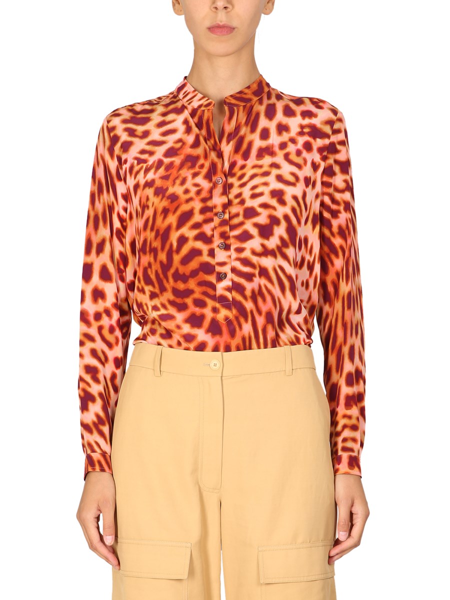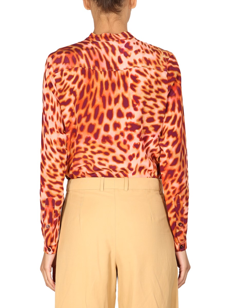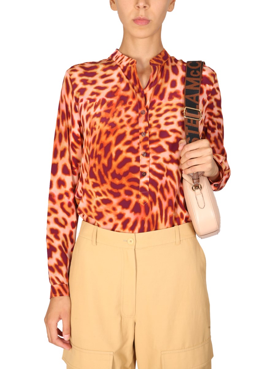 La camicia in seta con stampa ghepardo di Stella McCartney è un classico della moda con un tocco moderno. La camicia è realizzata in un materiale di seta leggero e arioso con chiusura frontale a bottoni. La stampa ghepardo arancione e bianca vi farà sentire agguerrite e alla moda, indipendentemente dall'abbinamento.