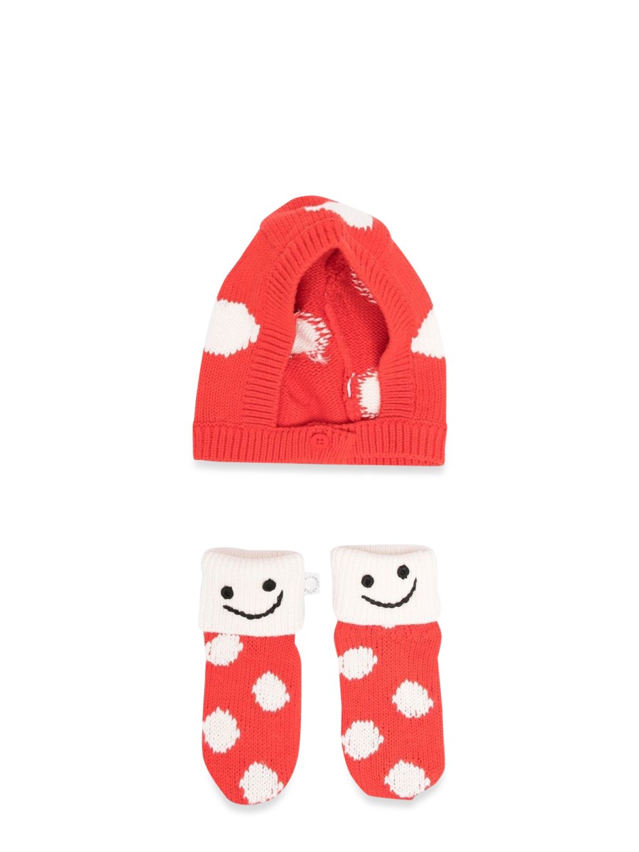 Le bellissime e funzionali cuffiette e guantini in misto cotone di Stella McCartney sono perfette per una giornata al parco. Queste cuffiette e guantini terranno sicuramente i vostri piccoli al caldo e al riparo mentre si godono la giornata all'aperto. La cuffietta e i guantini in misto cotone, realizzati a mano, equosolidali e biologici, sono di una bella tonalità di rosso e hanno un aspetto divertente e amichevole.