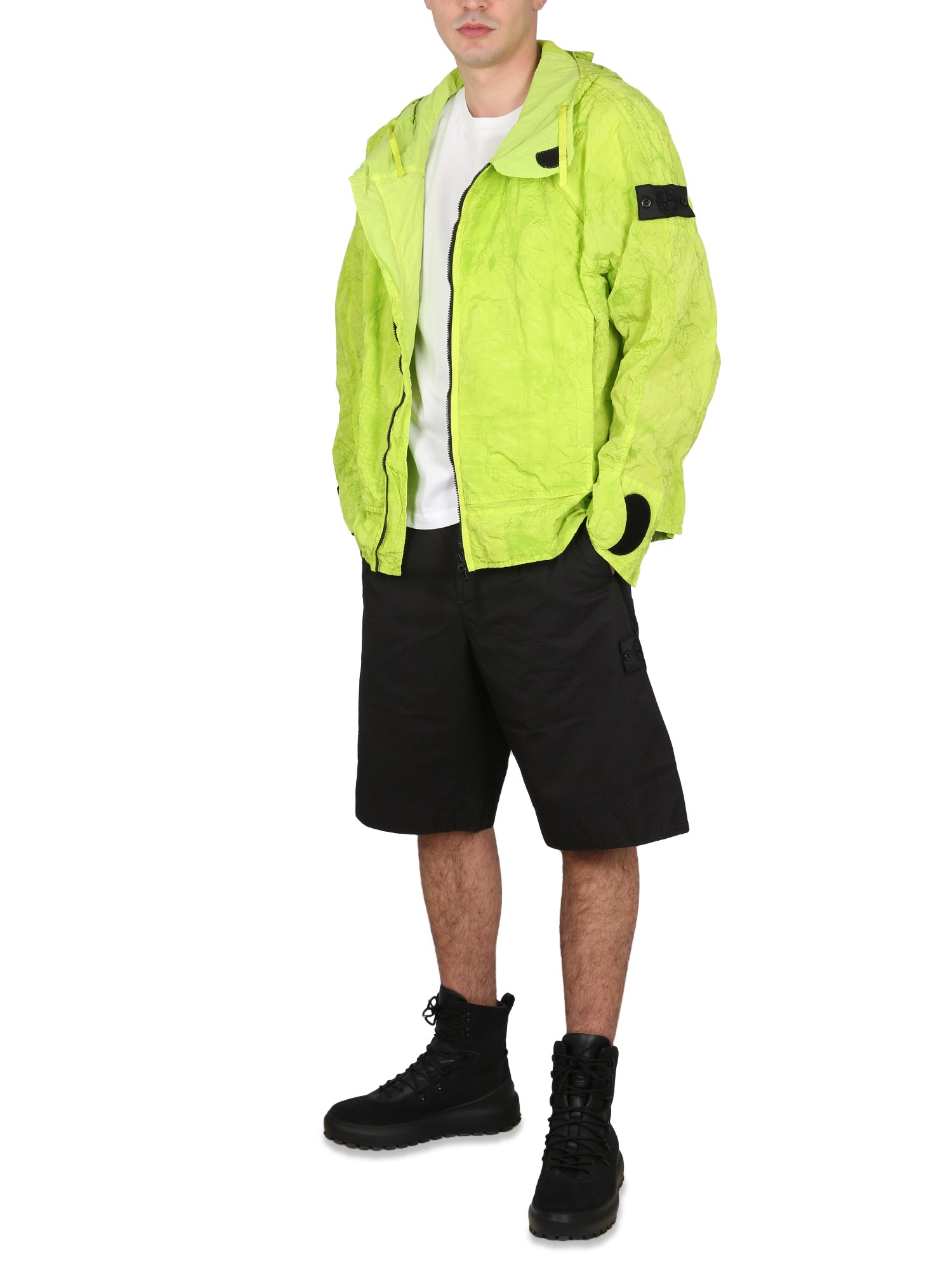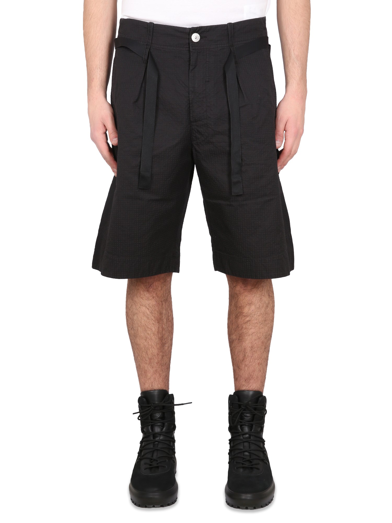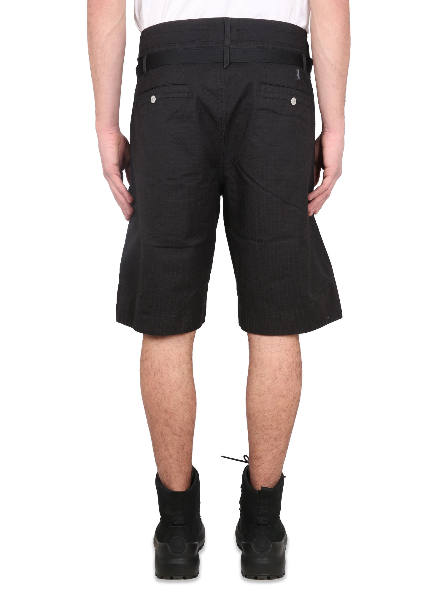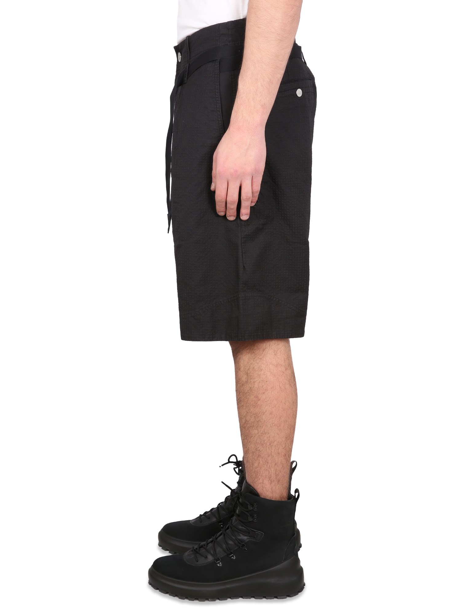 Questi pantaloncini di Stone Island Shadow Project sono perfetti per l'estate. Sono realizzati in un misto di cotone ed elastan traspirante, che li rende leggeri e comodi da indossare. Sono realizzati in due strati di tessuto con una chiusura a bottoni in vita. Hanno una vestibilità regolare e sono in stile bermuda con chiusura a bottoni.