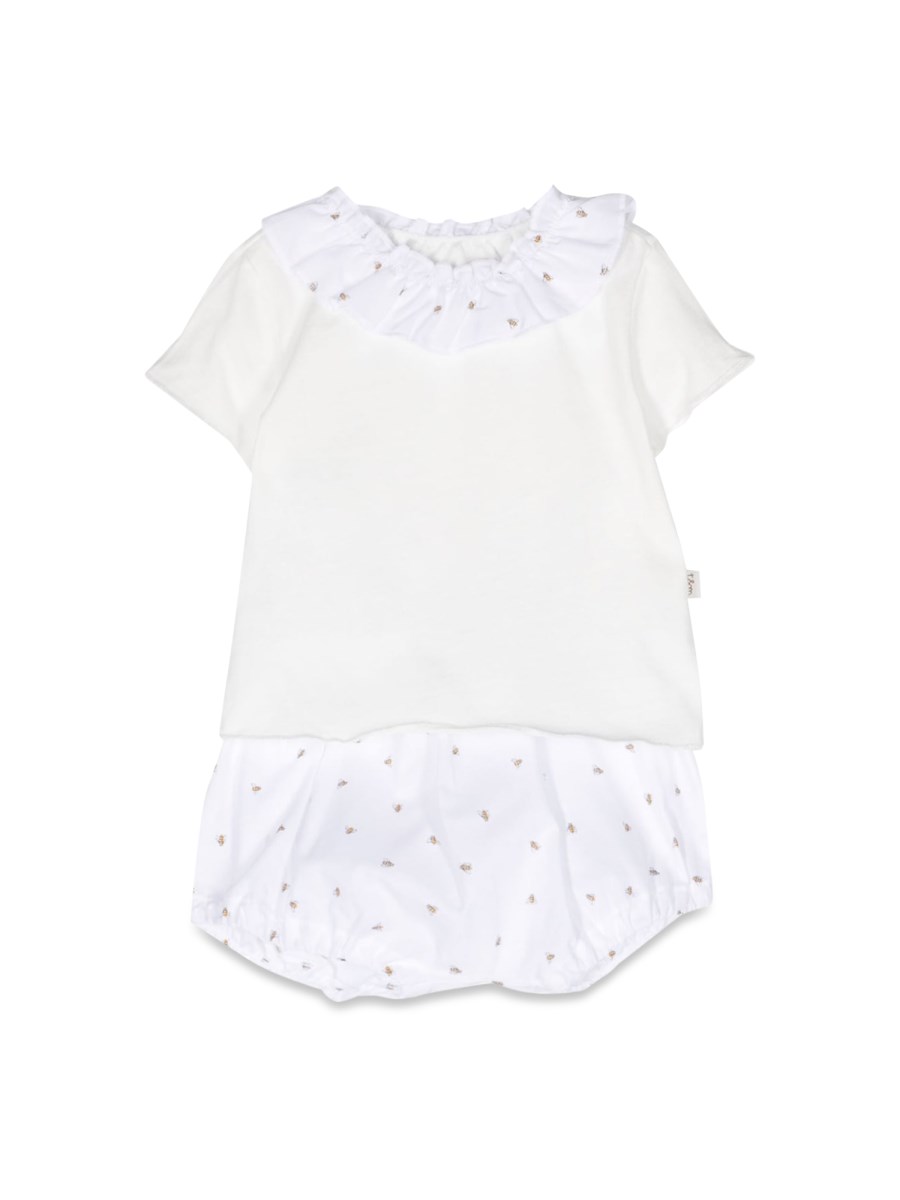 Il costume con maglietta e pantaloncini di Teddy & Minou è il modo perfetto per iniziare l'estate. È comodo e facile da indossare. La comoda t-shirt ha una scollatura arricciata, maniche corte e orlo dritto. I pantaloncini in stile pull-on hanno una vita elasticizzata e un design all-over.