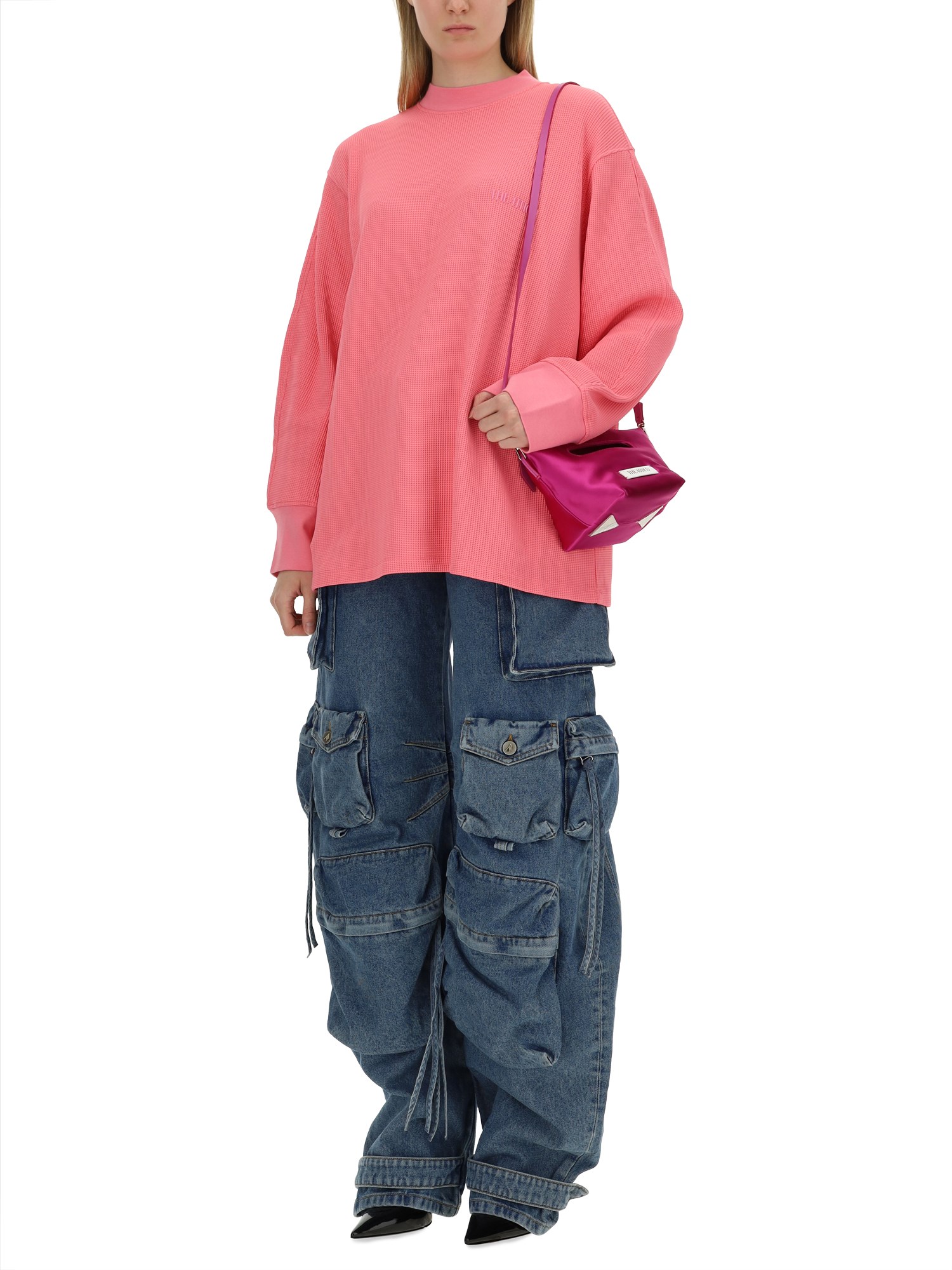 Questa T-shirt di The Attico presenta un logo distintivo, che incarna una miscela di stile contemporaneo ed eleganza casual. Realizzata con materiali di alta qualità, garantisce comfort e durata, rendendola un'aggiunta versatile a qualsiasi guardaroba. Il logo aggiunge un tocco di raffinatezza, perfetto sia per l'abbigliamento quotidiano che per le occasioni speciali. Elevate il vostro stile con questo capo essenziale che riflette le tendenze moderne e il fascino senza tempo.