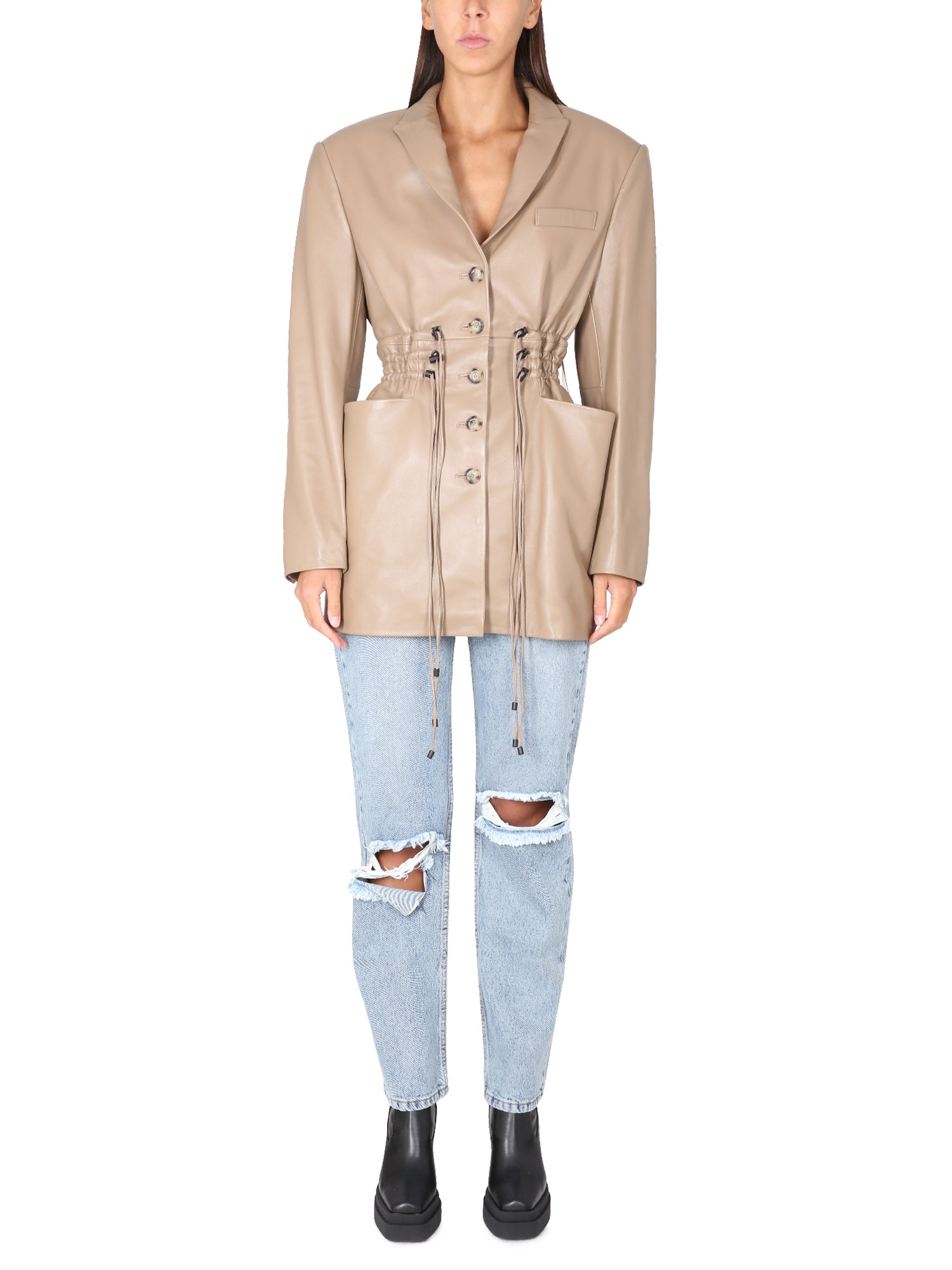 Vestito, questo blazer in pelle di agnello ben aderente di The Mannei è perfetto per una serata in città. Questo blazer in pelle d'agnello presenta una chiusura frontale con bottoni e maniche lunghe. La parte anteriore della giacca è realizzata in pelle di agnello di colore crema. Questo splendido capo in pelle di agnello è l'emblema dell'eleganza e dello stile.