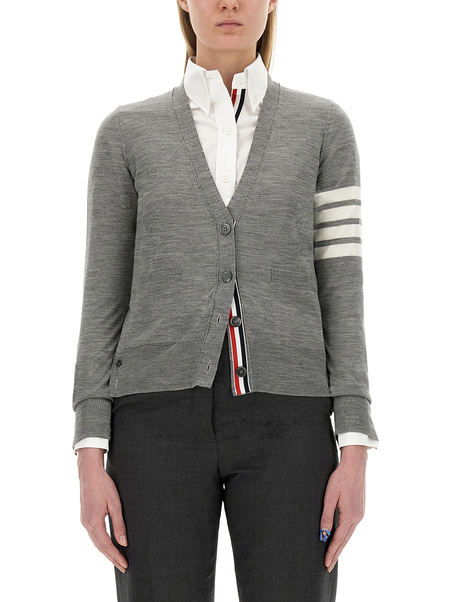 Questo cardigan di Thom Browne è stato progettato per mantenervi accoglienti e chic per tutto il giorno. Questo cardigan con scollo a V è il capo di abbigliamento per eccellenza e rappresenta un must-have per ogni fashionista. Che siate dirette in ufficio, con gli amici o semplicemente a casa, questo cardigan è il vostro compagno ideale.