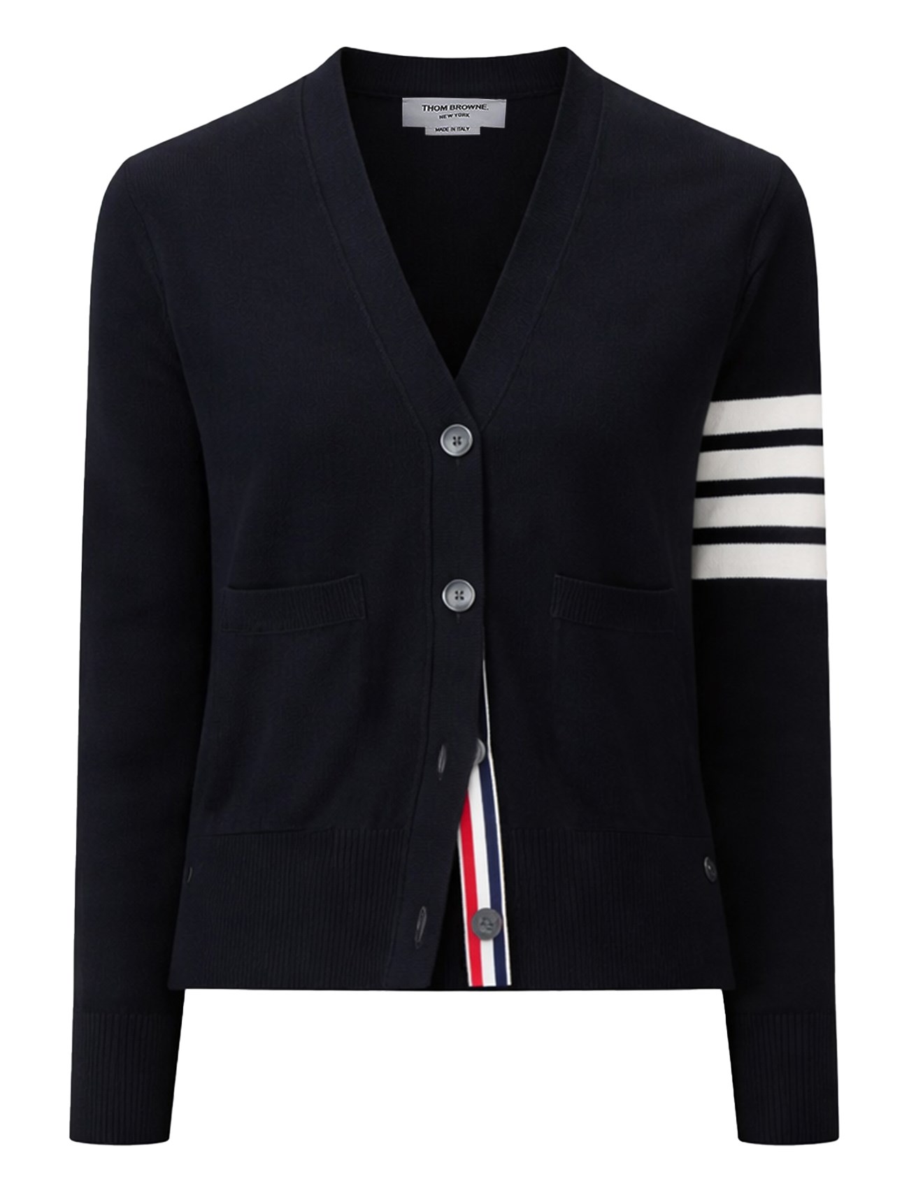 Avvolgetevi in un comfort lussuoso con questo cardigan in lana di Thom Browne. Caratterizzato da un classico scollo a V, maniche lunghe e chiusura frontale con bottoni, questo cardigan è la perfetta aggiunta versatile al vostro guardaroba. L'orlo dritto aggiunge una finitura pulita e raffinata, rendendolo ideale sia per le occasioni casual che per quelle formali.