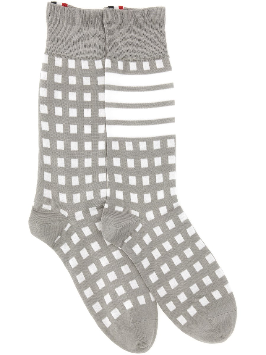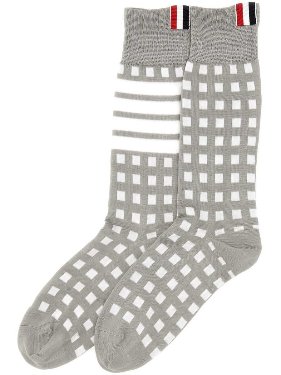 Concedete ai vostri piedi il massimo comfort con i calzini Madras in cotone jacquard di Thom Browne. Questi calzini lunghi hanno un'ammortizzazione moderata e sono ornati da un disegno all-over. Questi comodi calzini hanno una struttura morbida e traspirante. Sono realizzati in tessuto di cotone morbido e resistente.