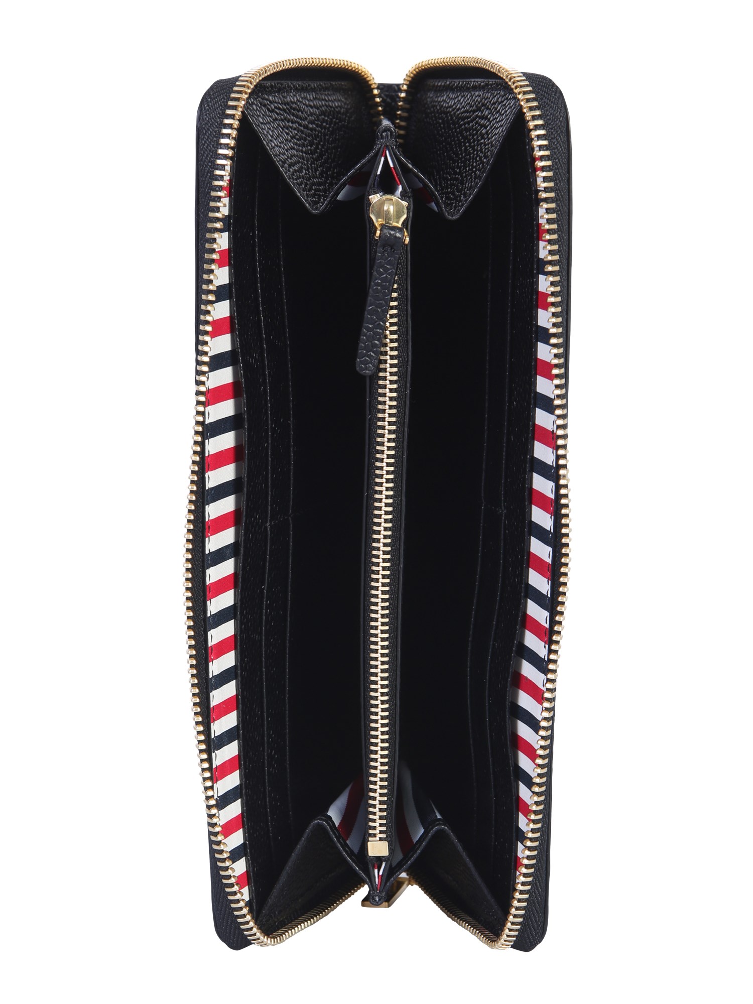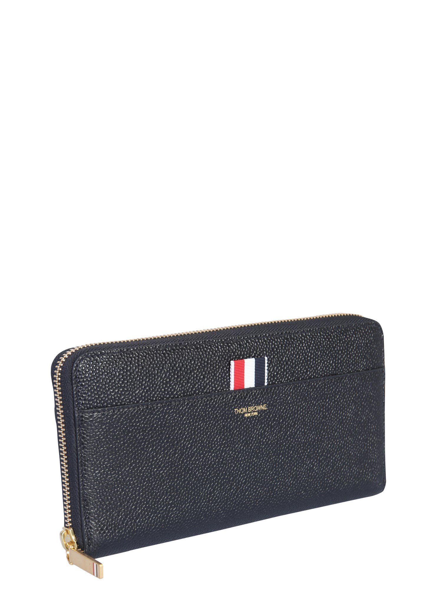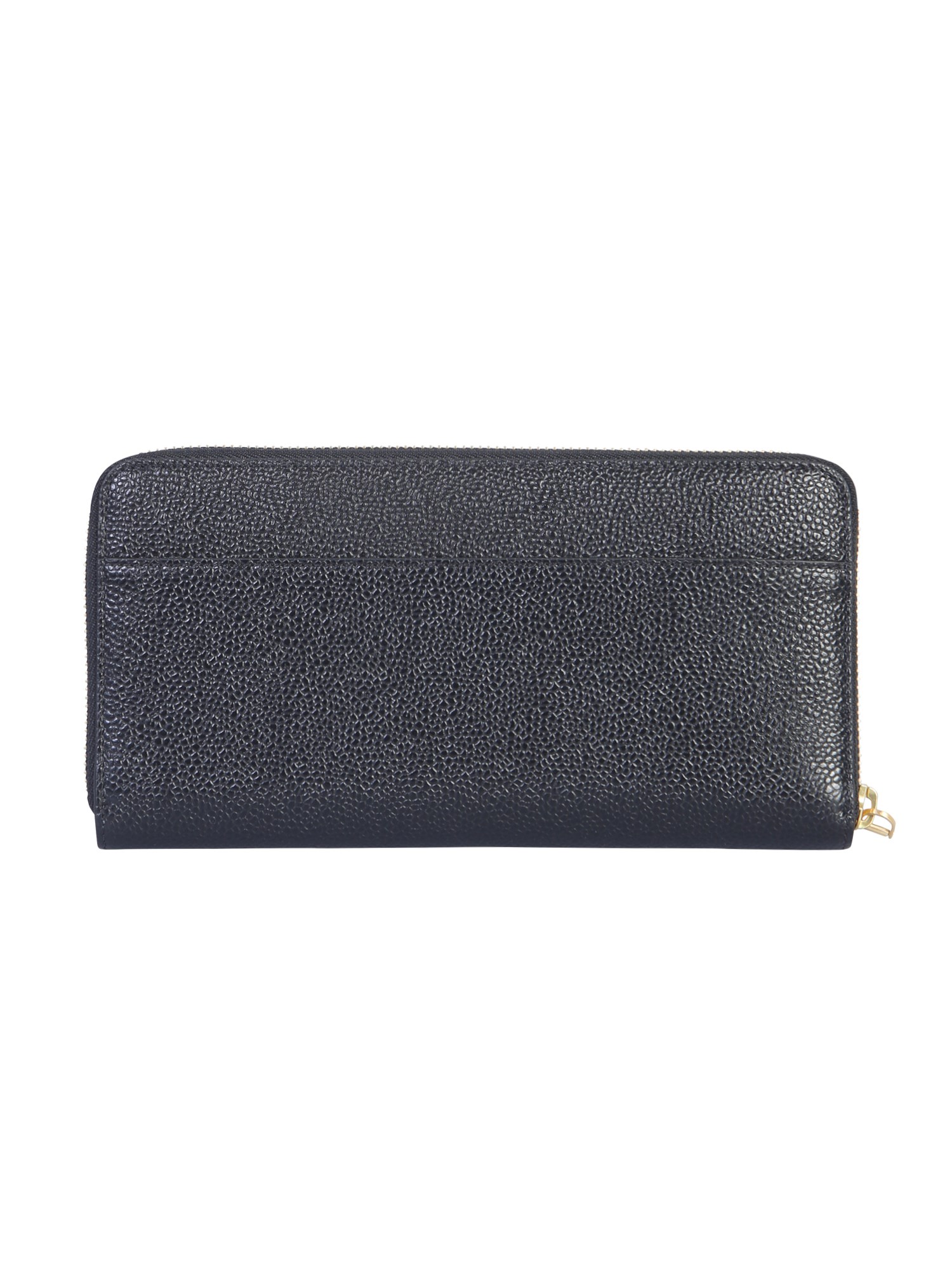 Il classico portafoglio in pelle di Thom Browne è realizzato in pelle della migliore qualità, con chiusura a cerniera e otto scomparti per carte di credito. È un articolo ideale per l'uso quotidiano. È il portafoglio perfetto per un uomo che apprezza la qualità e il lusso. L'interno è foderato con un materiale morbido e felpato, estremamente confortevole.