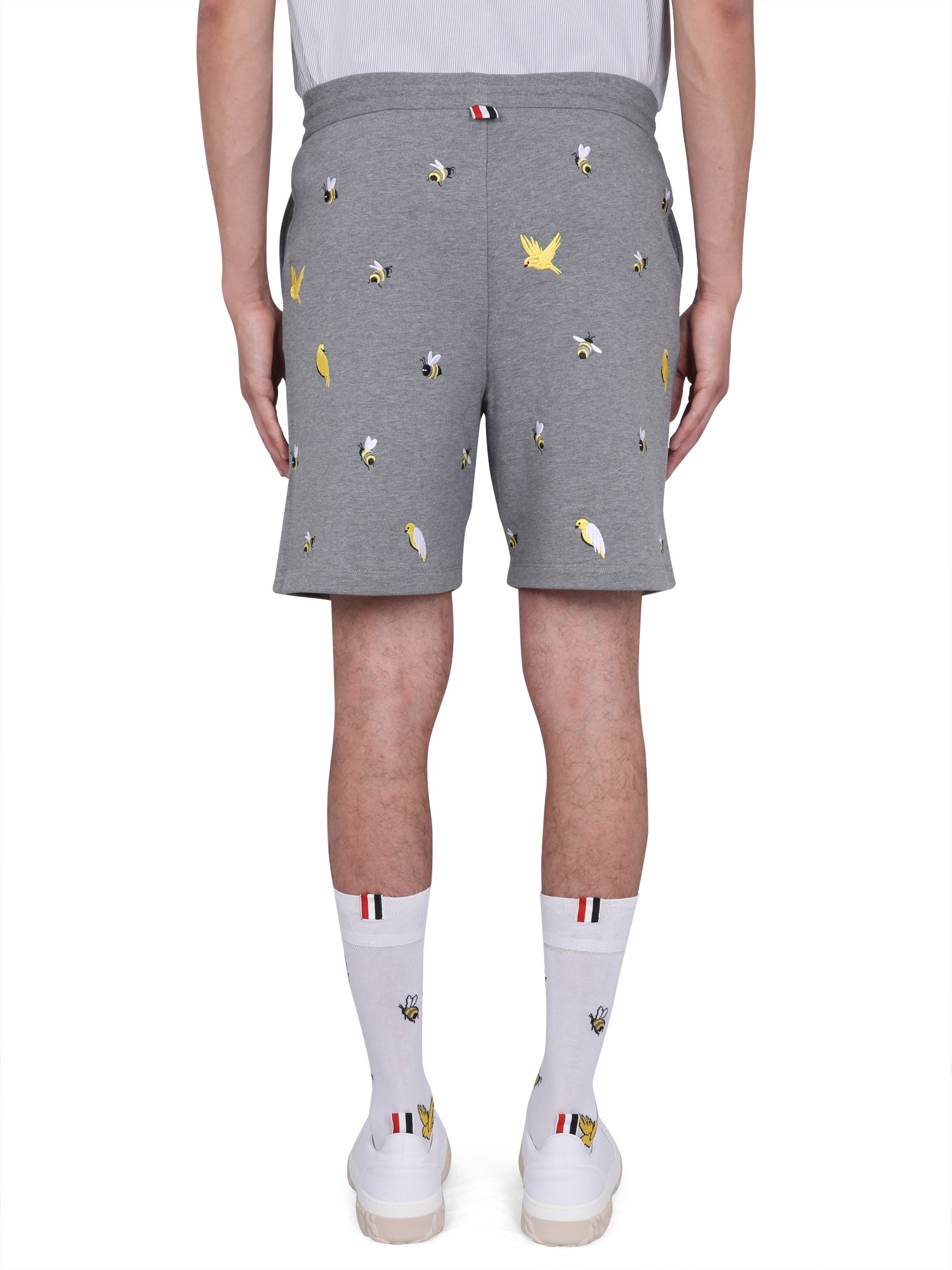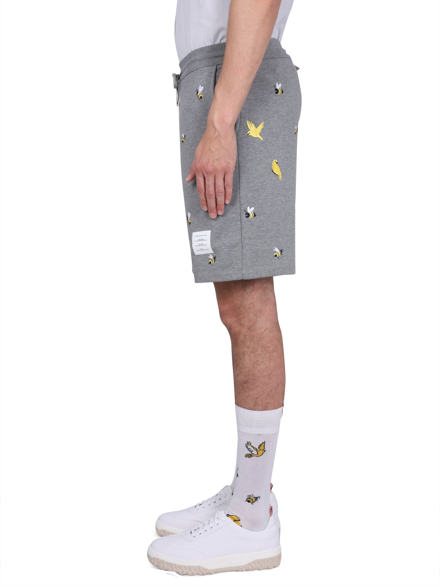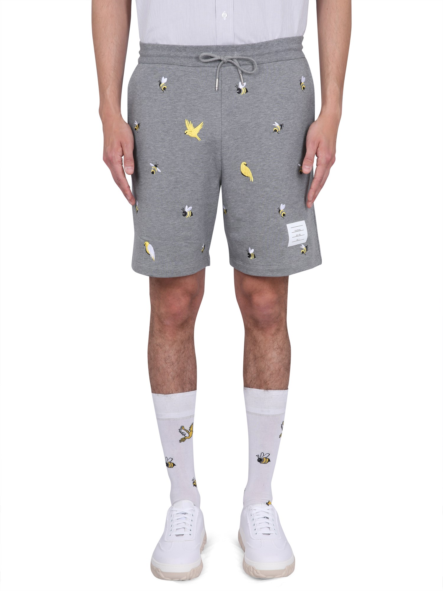 I bermuda di Thom Browne sono realizzati in morbido tessuto di cotone con elastico in vita e coulisse in gros grain sul retro. Sulla gamba sinistra è presente una toppa con logo. Questi pantaloncini sono disponibili in un'ampia gamma di colori e taglie tra cui scegliere. Sono perfetti per l'estate.