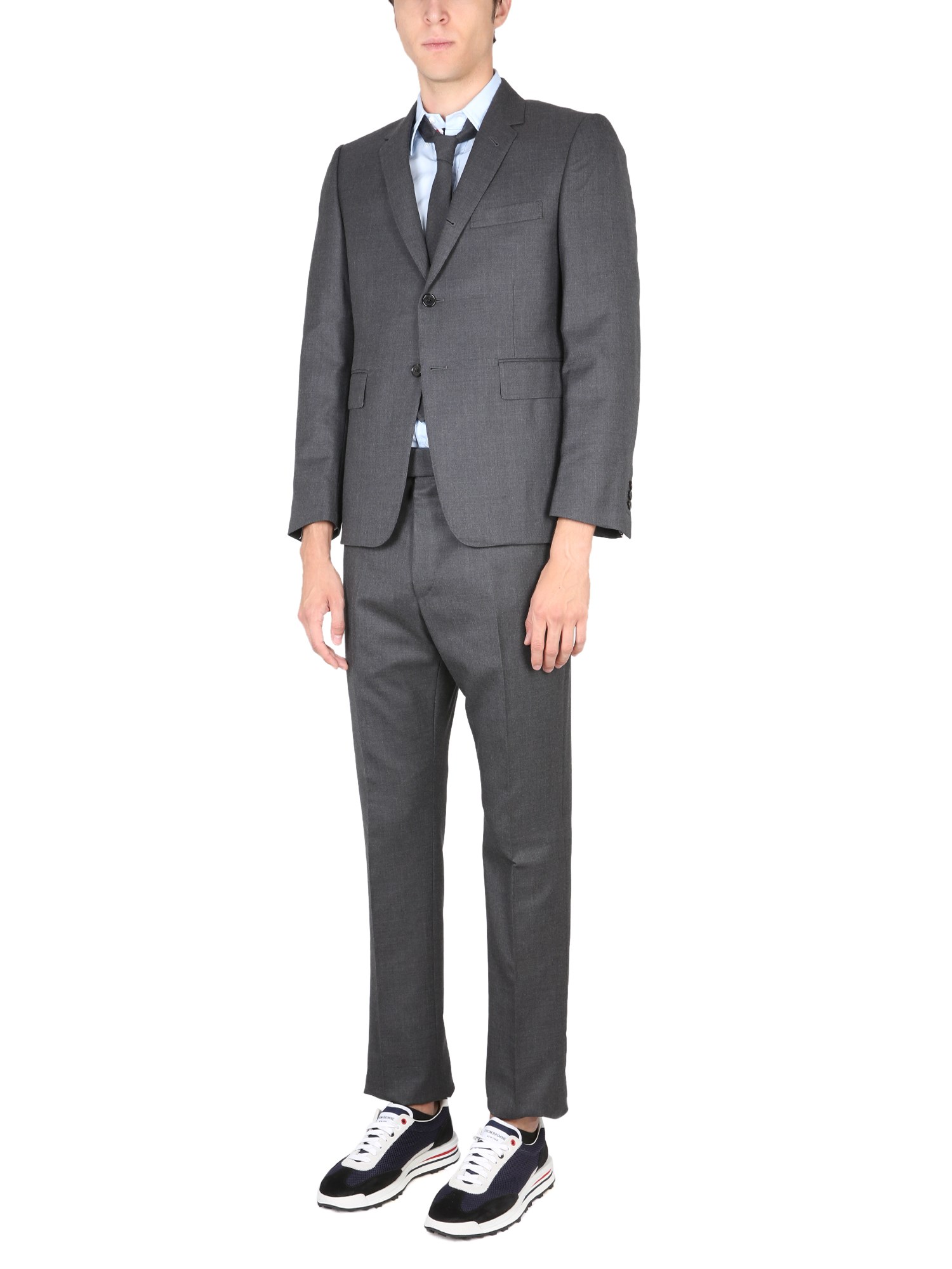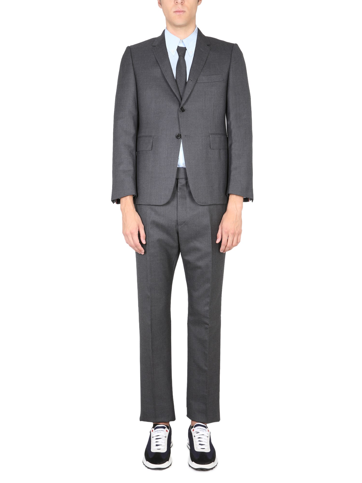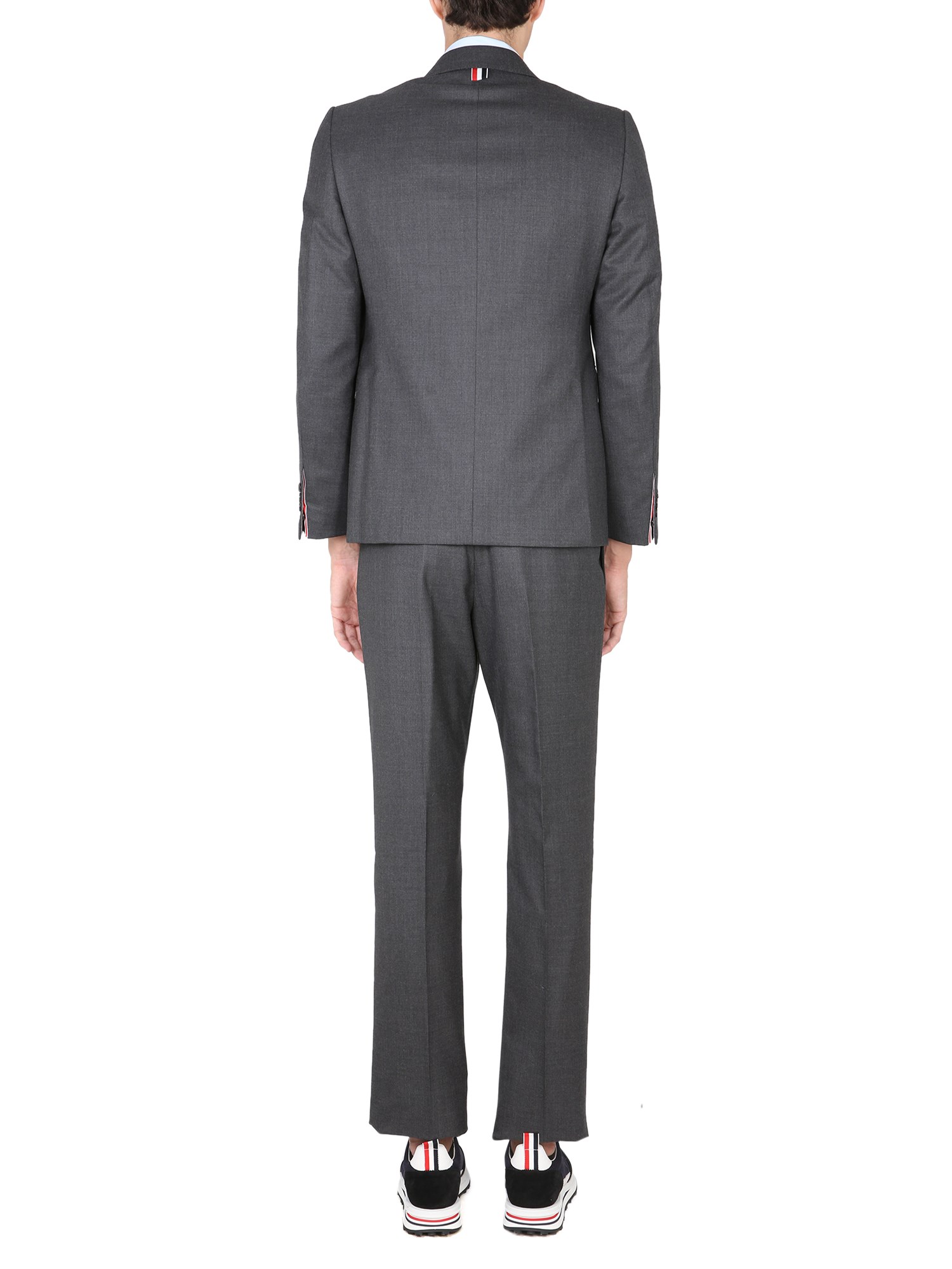 L'abito in lana di Thom Browne è un classico americano e, con una vestibilità tradizionale e linee eleganti, è una scelta sofisticata e raffinata per qualsiasi uomo. L'abito in lana può essere abbinato a camicia e cravatta o a un cappotto sportivo e pantaloni. Il tessuto di lana è caldo, confortevole e resistente all'usura.