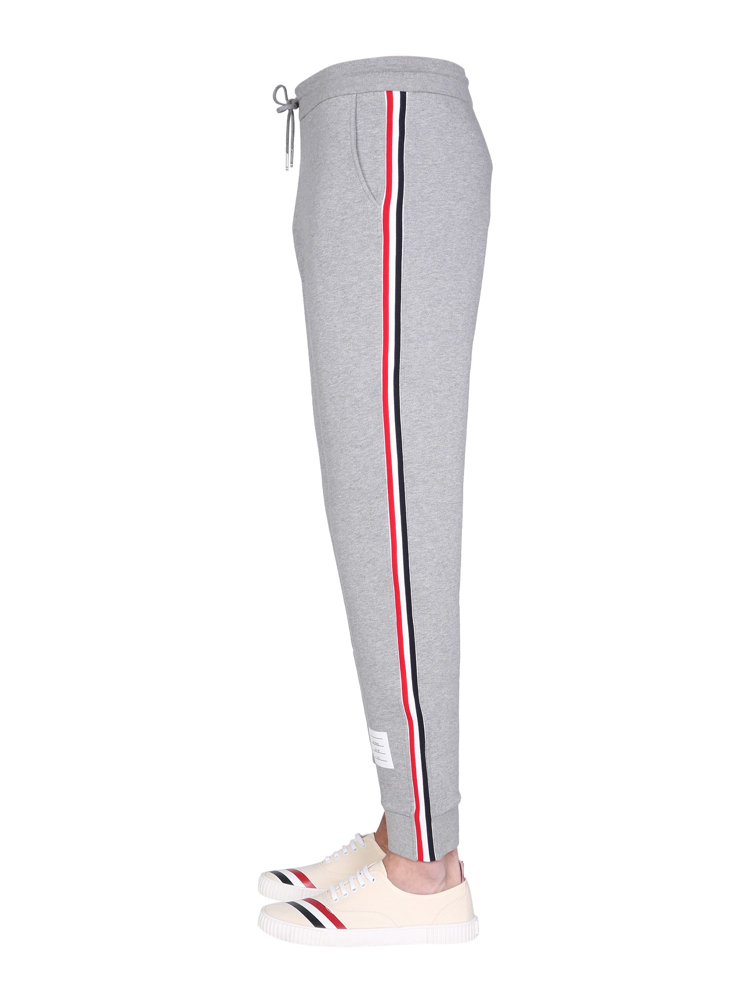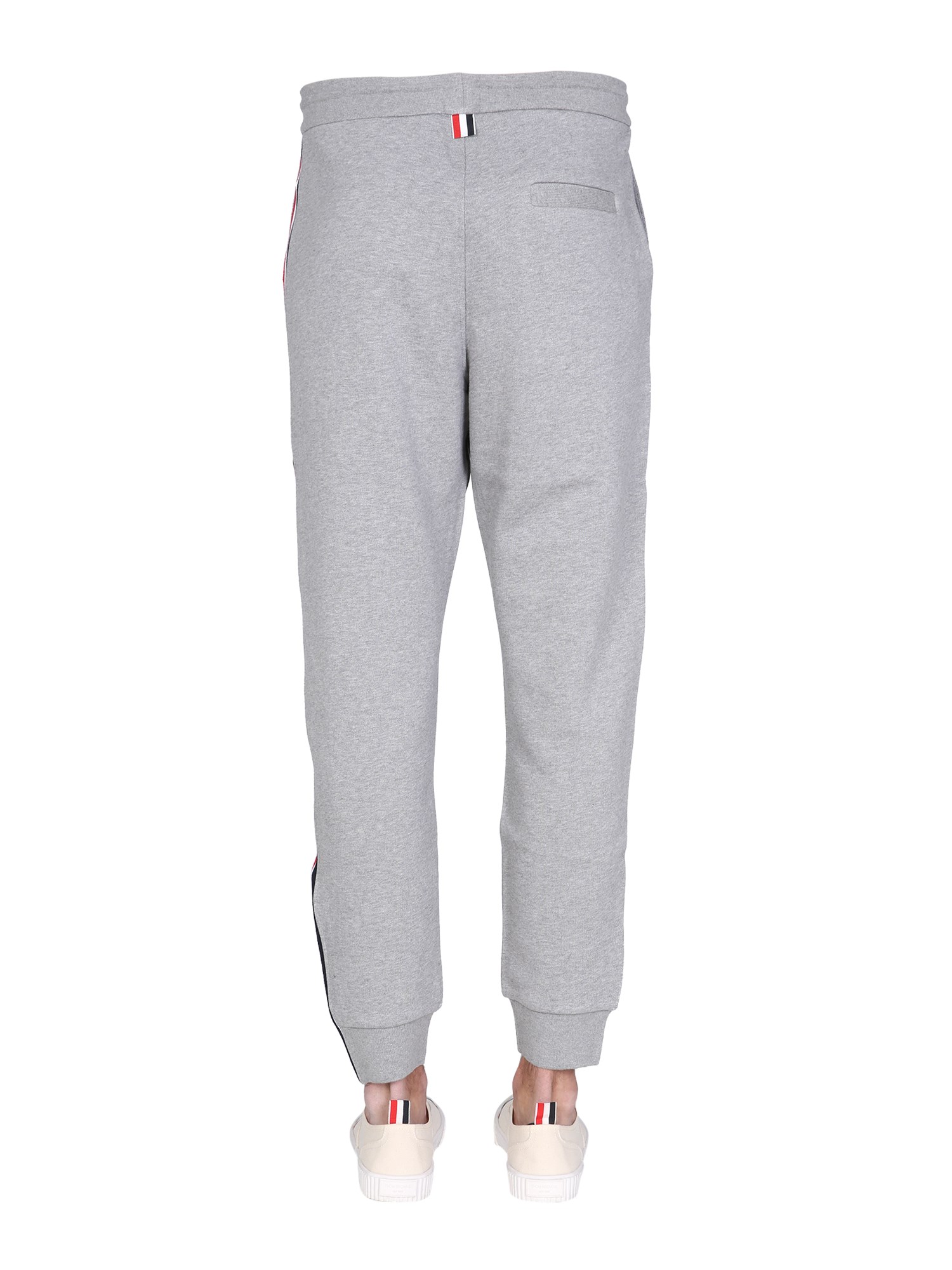 Rimanete comodi e alla moda con i pantaloni da jogging con riga RWB di Thom Browne. Realizzati in cotone traspirante, questi pantaloni sono dotati di coulisse elastica in vita per una vestibilità personalizzata. Il dettaglio a righe RWB sui lati aggiunge un tocco di colore al vostro ensemble da allenamento.