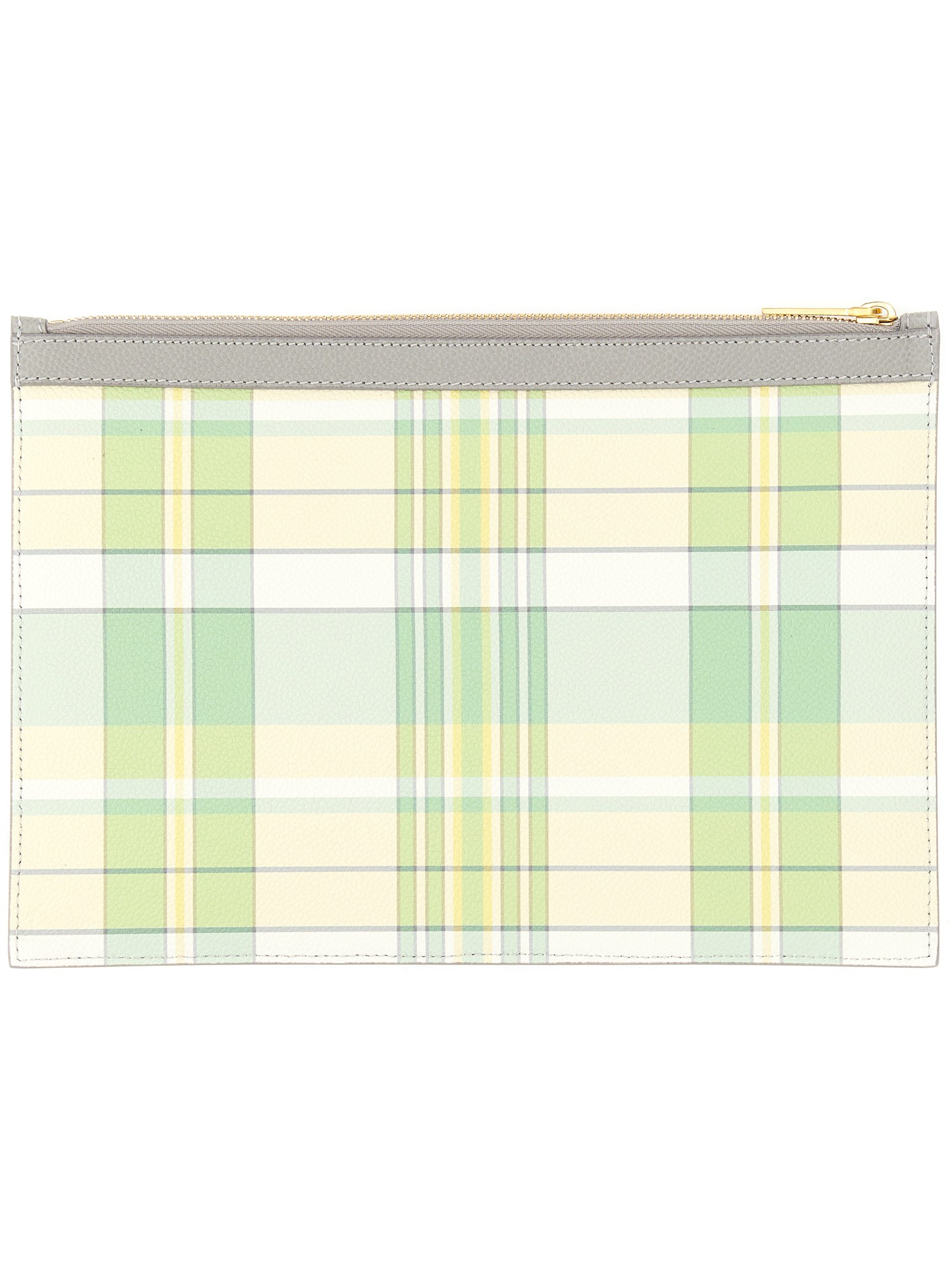 Questo portadocumenti di Thom Browne è realizzato in morbida e resistente pelle di vitello. Il motivo a quadri conferisce al portadocumenti un aspetto professionale e di alto livello. La patta frontale è dotata di una chiusura a cerniera e di fessure per le carte di credito per tenere i documenti al sicuro. Questo portafoglio è realizzato con i migliori materiali e il design elegante lo renderà sempre la scelta perfetta.