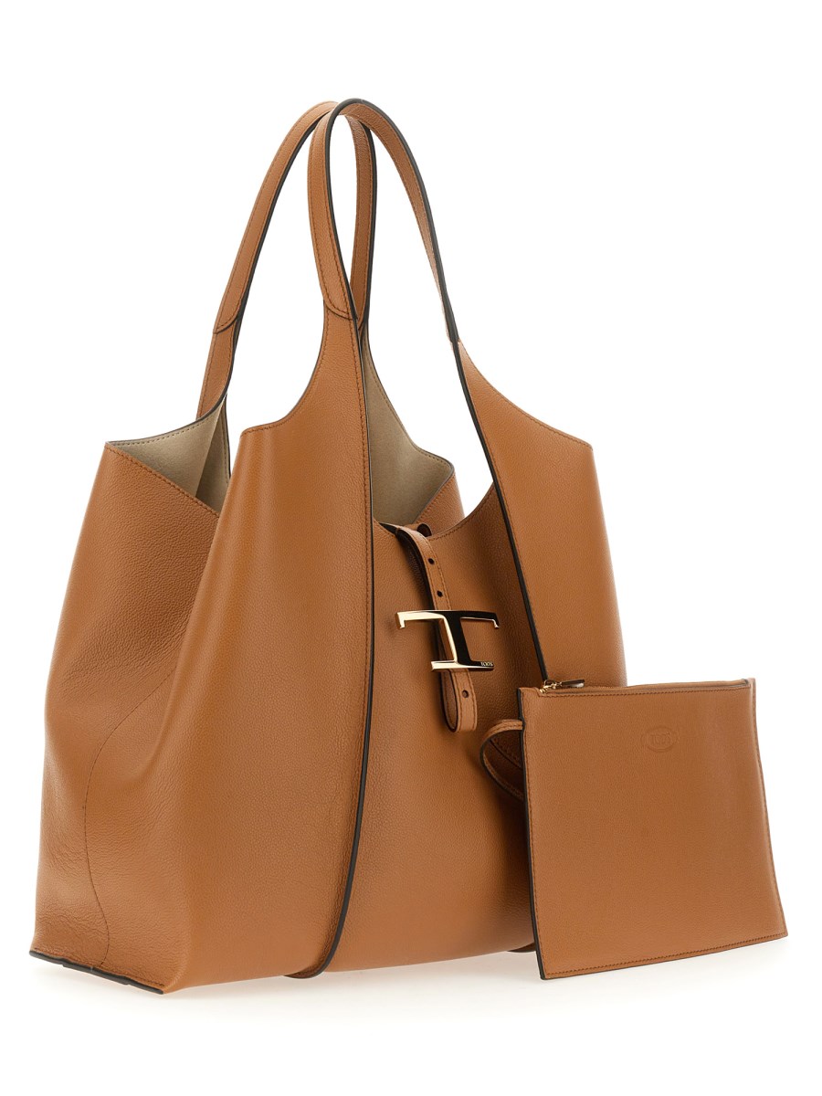 Una borsa in pelle Tod's è un accessorio elegante e versatile che può essere portato a mano, a tracolla o utilizzando il comodo manico. Questa borsa in pelle con doppio manico e chiusura con bottone a pressione presenta un'ampia apertura superiore e una chiusura a cerniera che consente di raggiungere facilmente l'interno per afferrare il telefono, il portafoglio o altri oggetti personali.