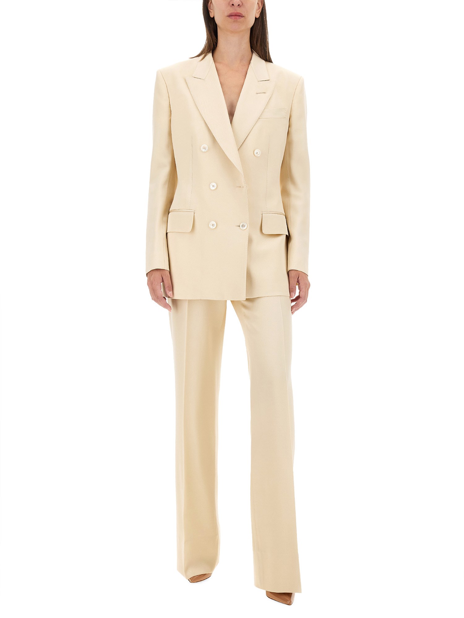 La giacca doppiopetto di Tom Ford è un esempio di raffinatezza ed eleganza, realizzata con materiali pregiati per garantire comfort e durata. La sua vestibilità sartoriale accentua la silhouette, mentre il design classico è caratterizzato da revers a lancia e spalla strutturata, che la rendono un'aggiunta versatile a qualsiasi guardaroba. Ideale per occasioni formali o eventi di alto livello, questa giacca combina uno stile senza tempo con una raffinatezza moderna, incarnando l'essenza della moda di lusso.