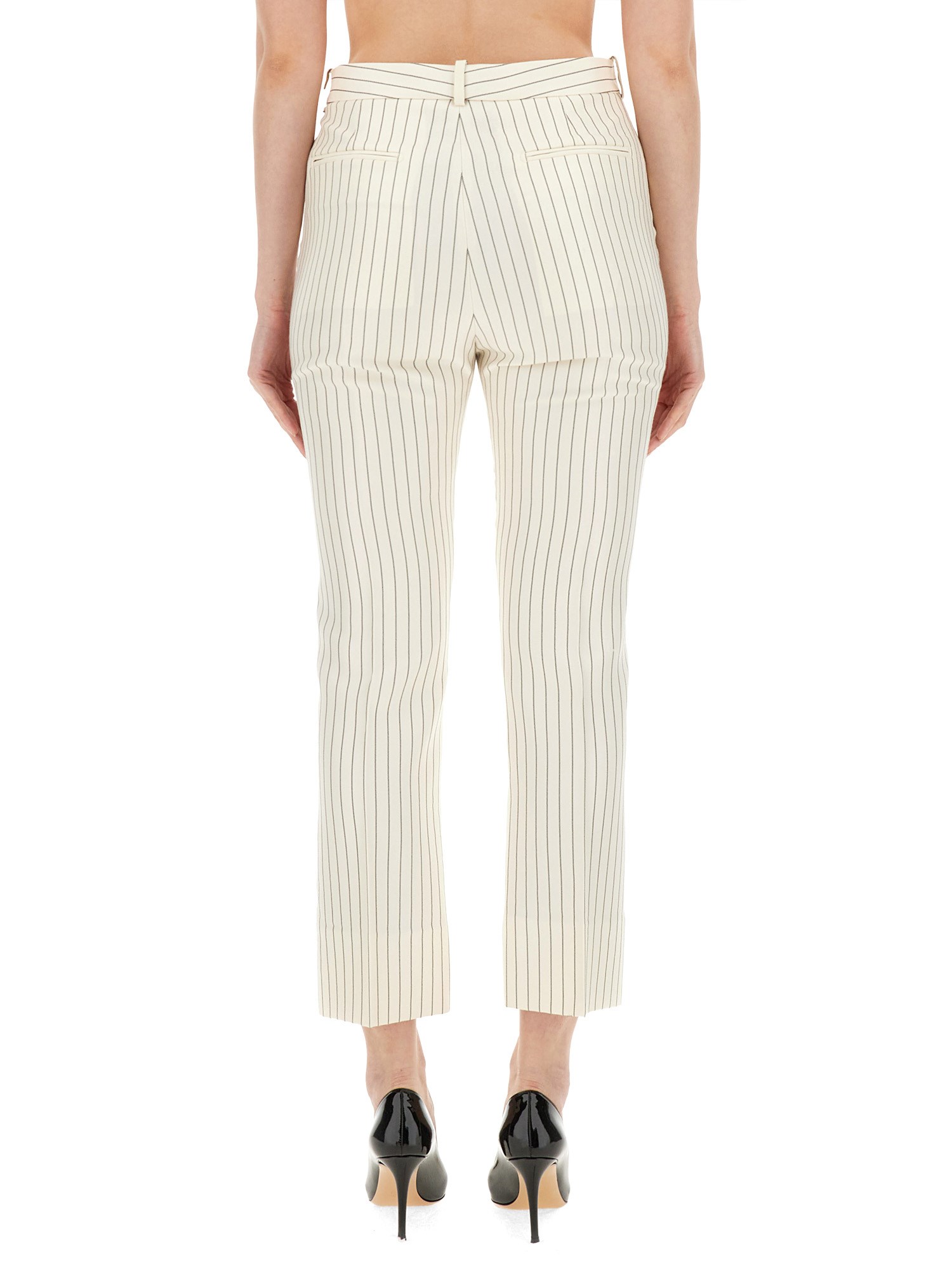 Elevate il vostro guardaroba con questi lussuosi pantaloni sartoriali a righe in misto lana e seta di Tom Ford. Realizzati con i materiali più pregiati, questi pantaloni offrono un look sofisticato e raffinato, perfetto per qualsiasi ambiente formale o professionale. Il classico design a righe aggiunge un tocco di eleganza, mentre la vestibilità sartoriale assicura una silhouette perfetta.