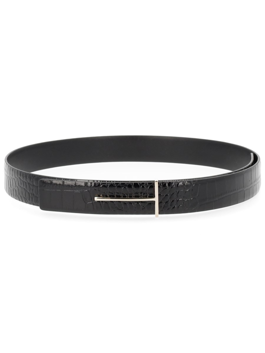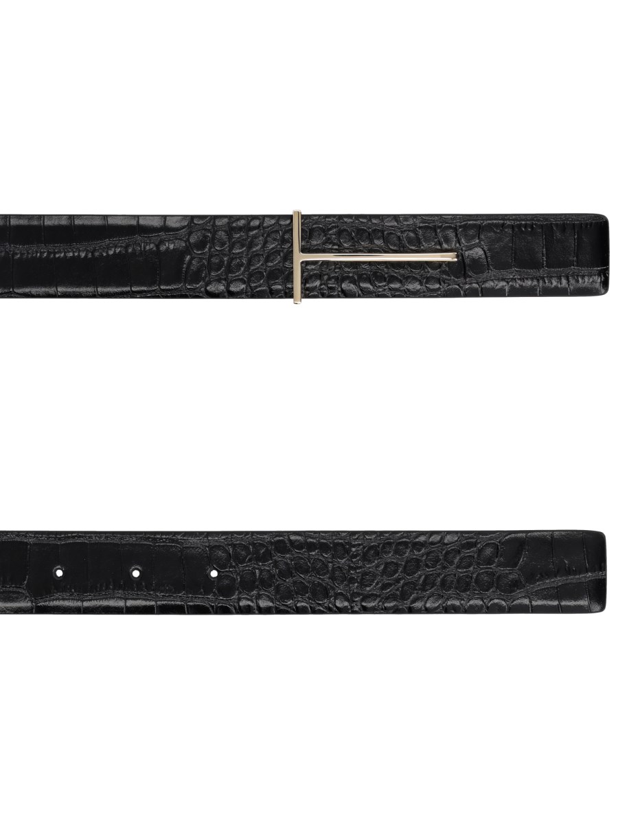CINTURA IN PELLE EFFETTO COCCODRILLO CON FIBBIA T