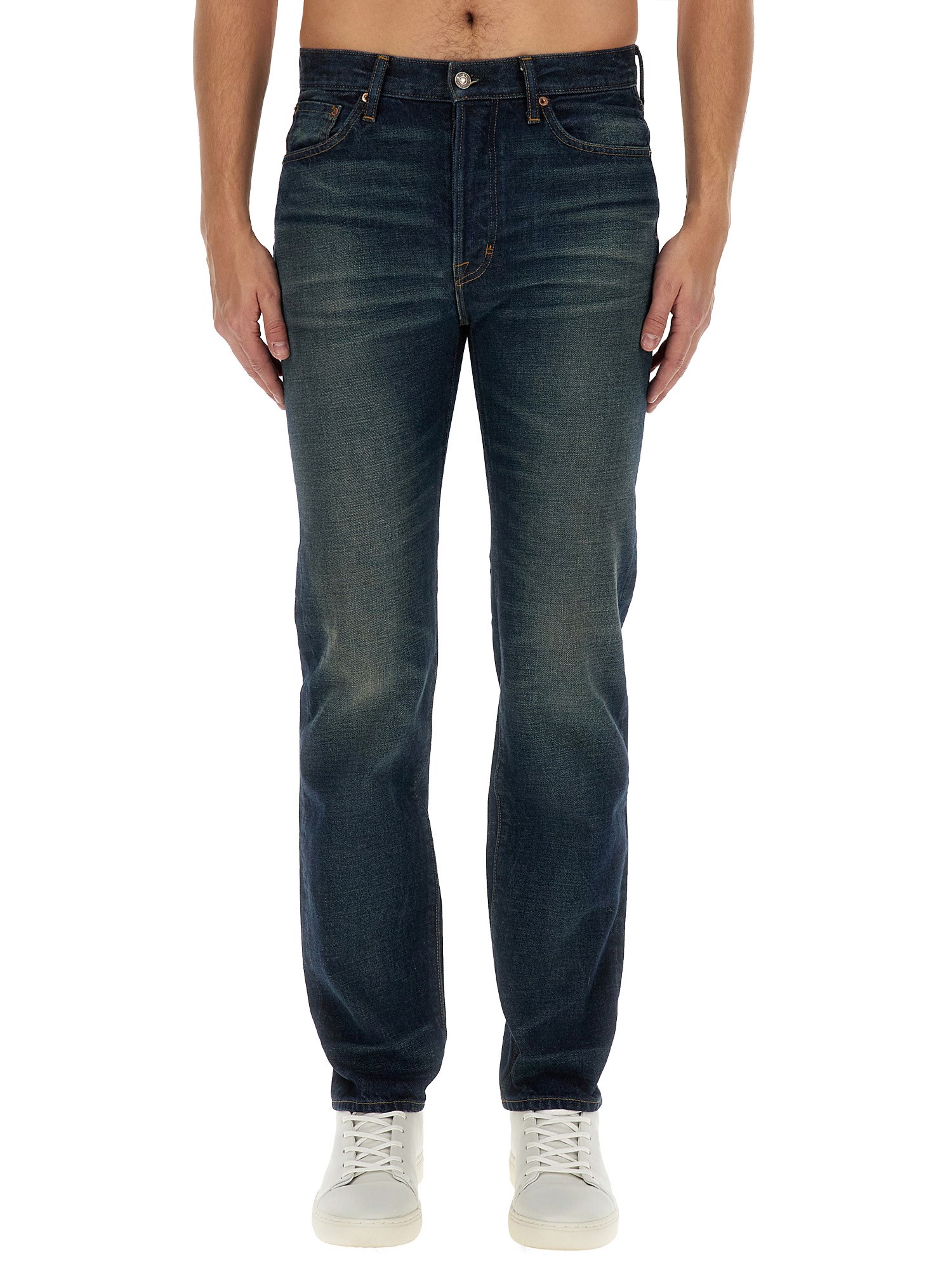 Questi jeans di Tom Ford offrono un mix perfetto di comfort, stile e durata. Progettati con una classica chiusura a bottoni e cerniera, questi jeans sono facili da indossare e offrono una vestibilità sicura. Il tessuto in cotone di alta qualità non solo assicura una lunga durata, ma offre anche traspirabilità, rendendoli perfetti per il comfort di tutto il giorno.