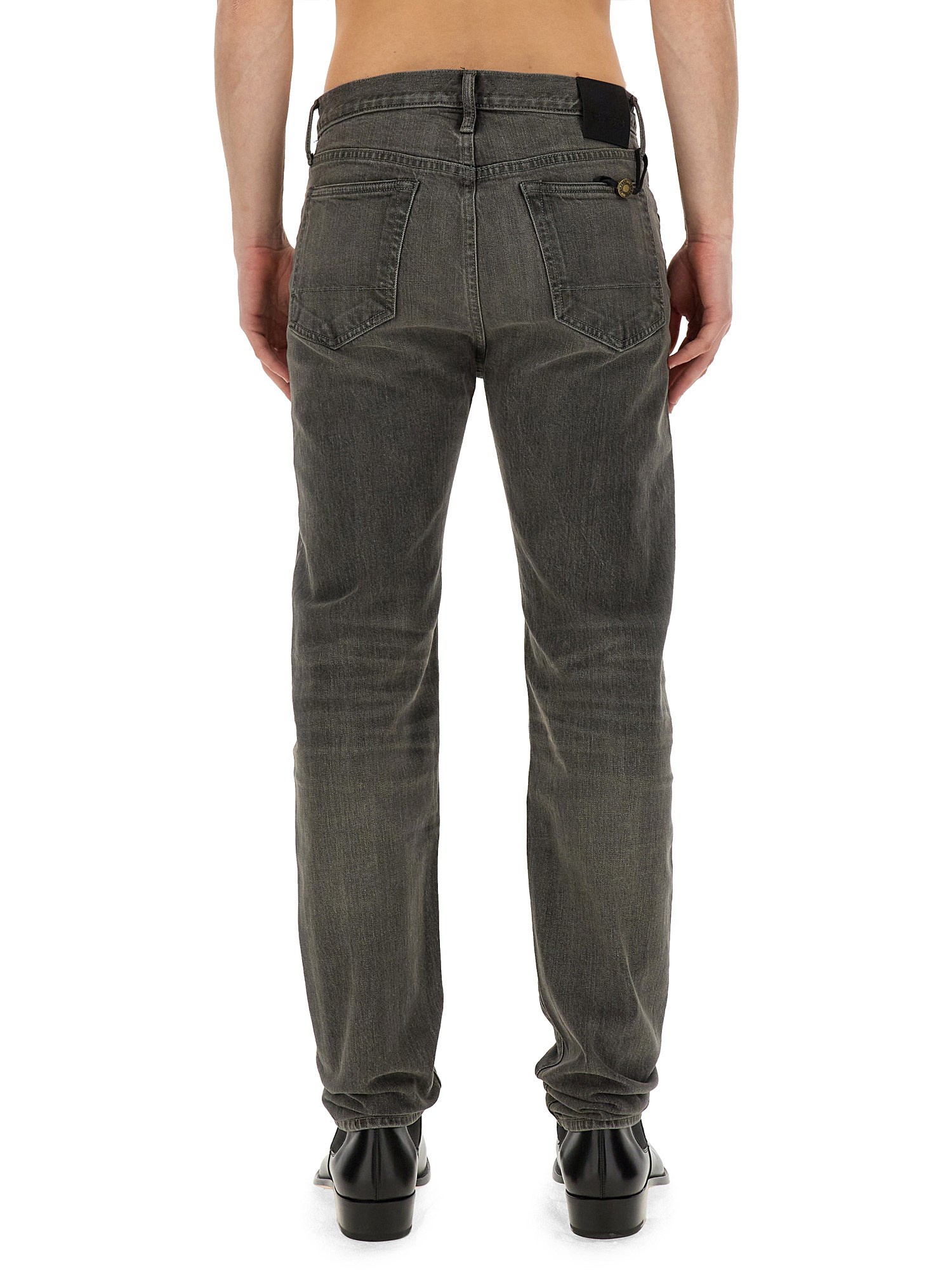 Questi jeans di Tom Ford sono realizzati con la massima attenzione ai dettagli e progettati per offrire comfort e stile. Tenete il passo con le ultime tendenze della moda e godetevi il massimo comfort del design con chiusura a bottoni e cerniera. Questi jeans in denim nero offrono una vestibilità slim lusinghiera, esaltando le vostre curve naturali e mettendo in risalto il vostro senso della moda.