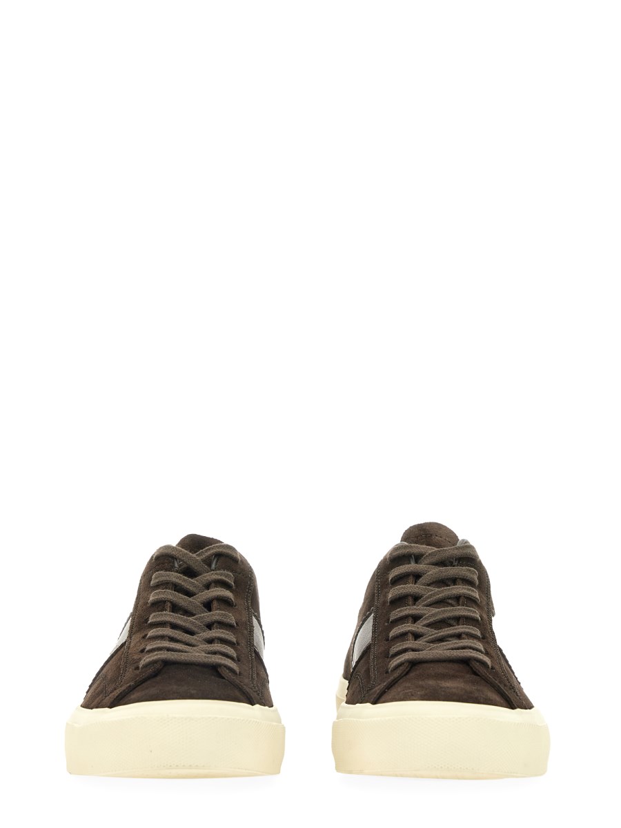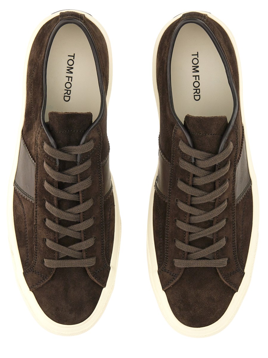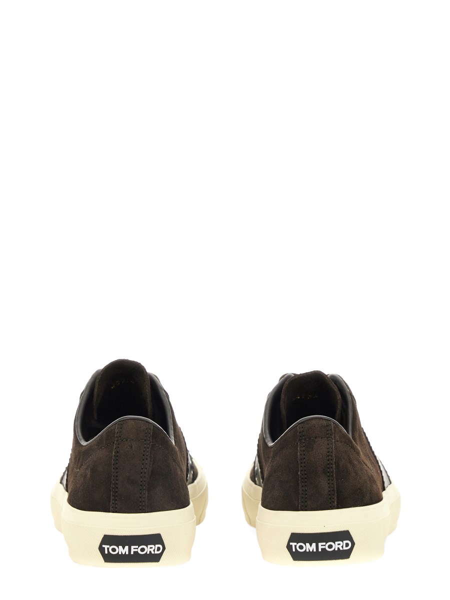 La sneaker Cambridge in pelle di Tom Ford è un must-have per l'armadio di ogni uomo. Queste scarpe hanno una tomaia in pelle scamosciata leggera e resistente con un'esclusiva suola in gomma flessibile che garantisce grande flessibilità e assorbimento degli urti. La tomaia presenta un dettaglio del logo laterale e una chiusura regolabile con lacci sul davanti.