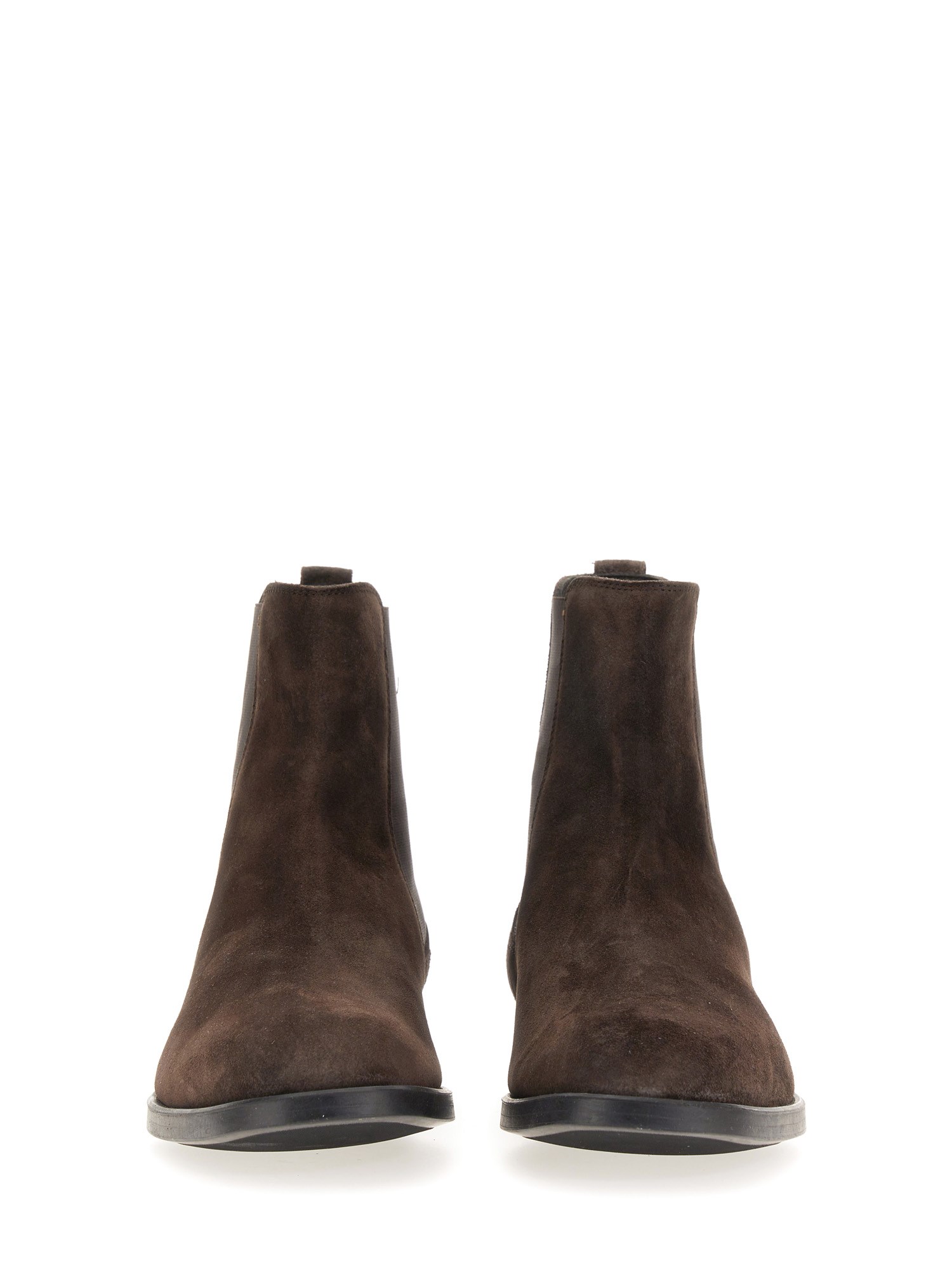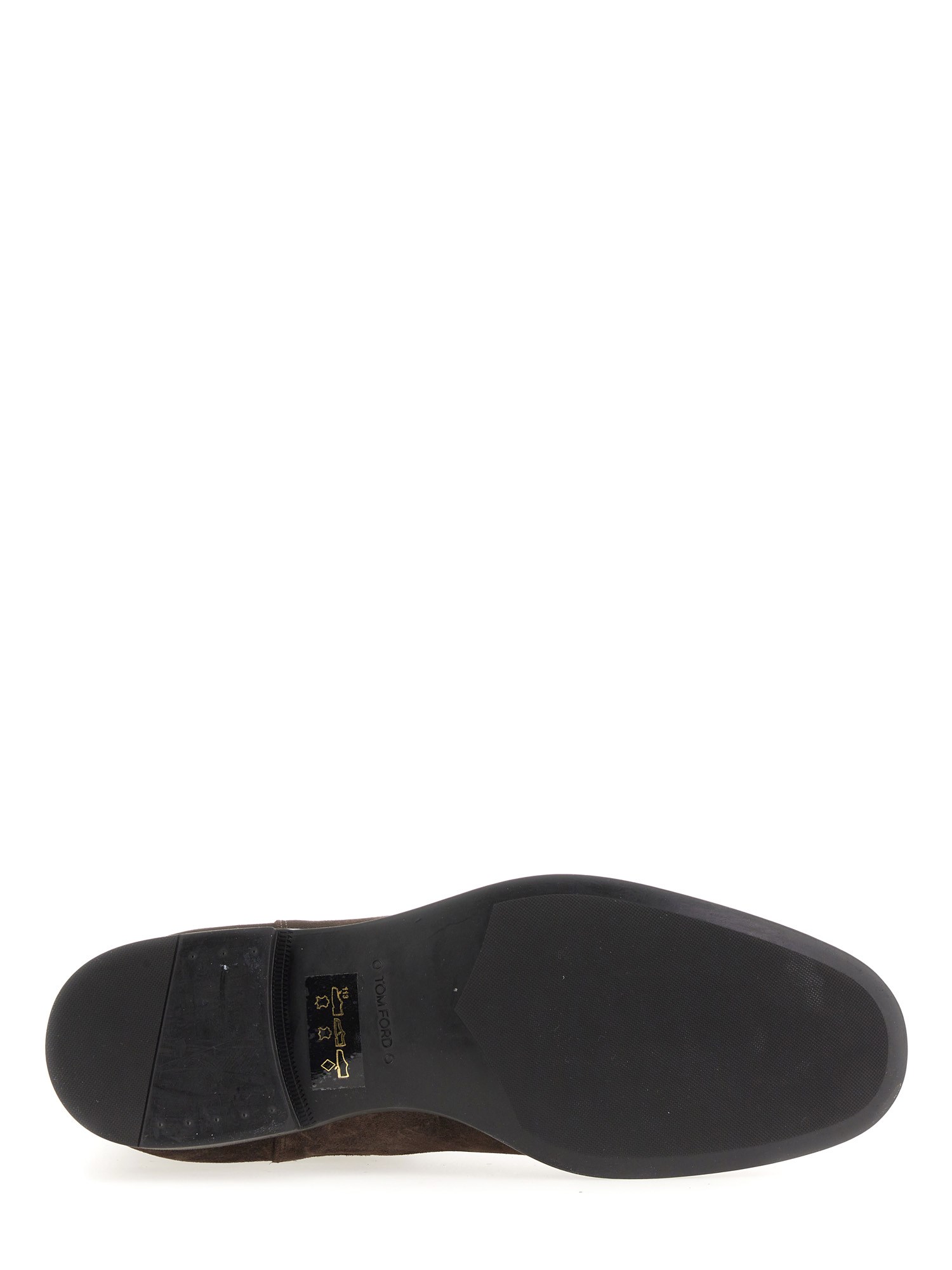 Questi stivali di Tom Ford sono l'aggiunta perfetta alla vostra collezione di calzature e combinano uno stile senza tempo con il massimo comfort. Realizzati in pelle scamosciata di prima qualità, questi stivali alla caviglia sono progettati per mantenere i piedi caldi e accoglienti durante le stagioni più fredde. Il materiale scamosciato aggiunge un tocco di eleganza e raffinatezza al vostro look, rendendo questi stivali una scelta versatile sia per le occasioni casual che per quelle formali.