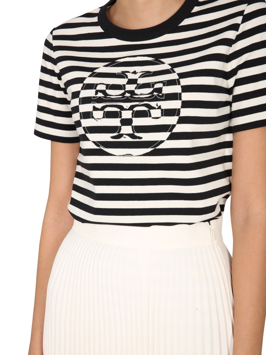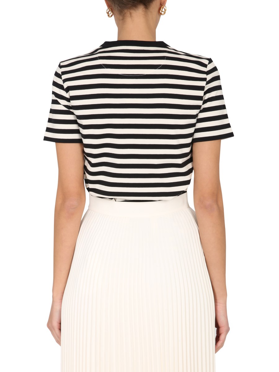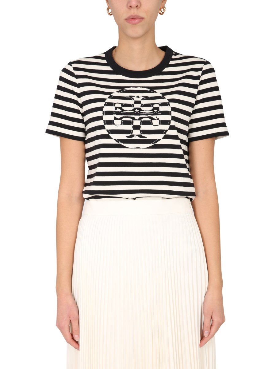 - GIROCOLLO- MOTIVO A RIGHE- DOPPIA T APPLICATA - REGULAR FIT- 100% COTONE - LA MODELLA È ALTA 180 CM E INDOSSA LA TAGLIA S