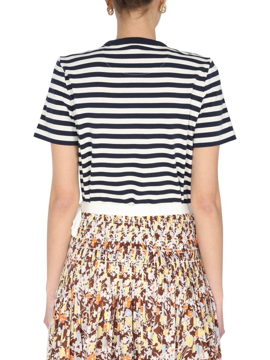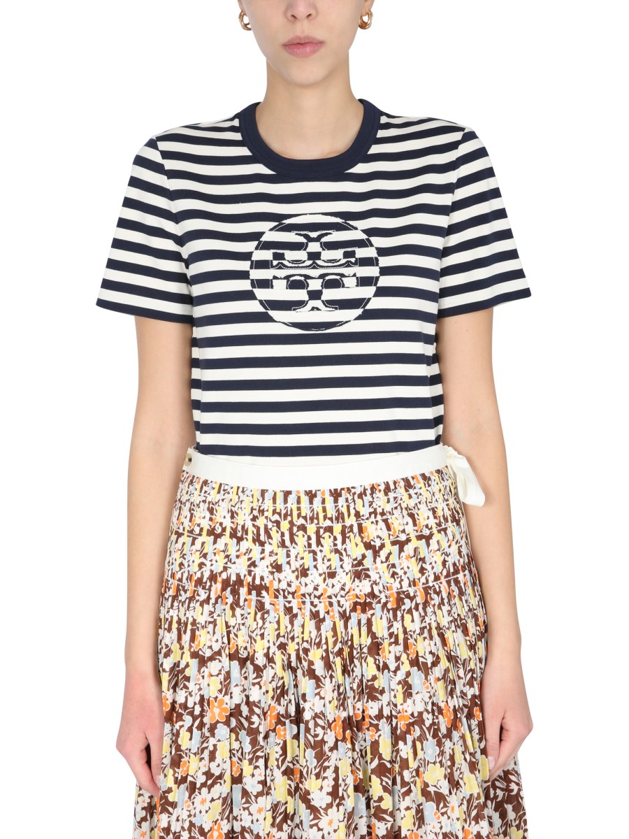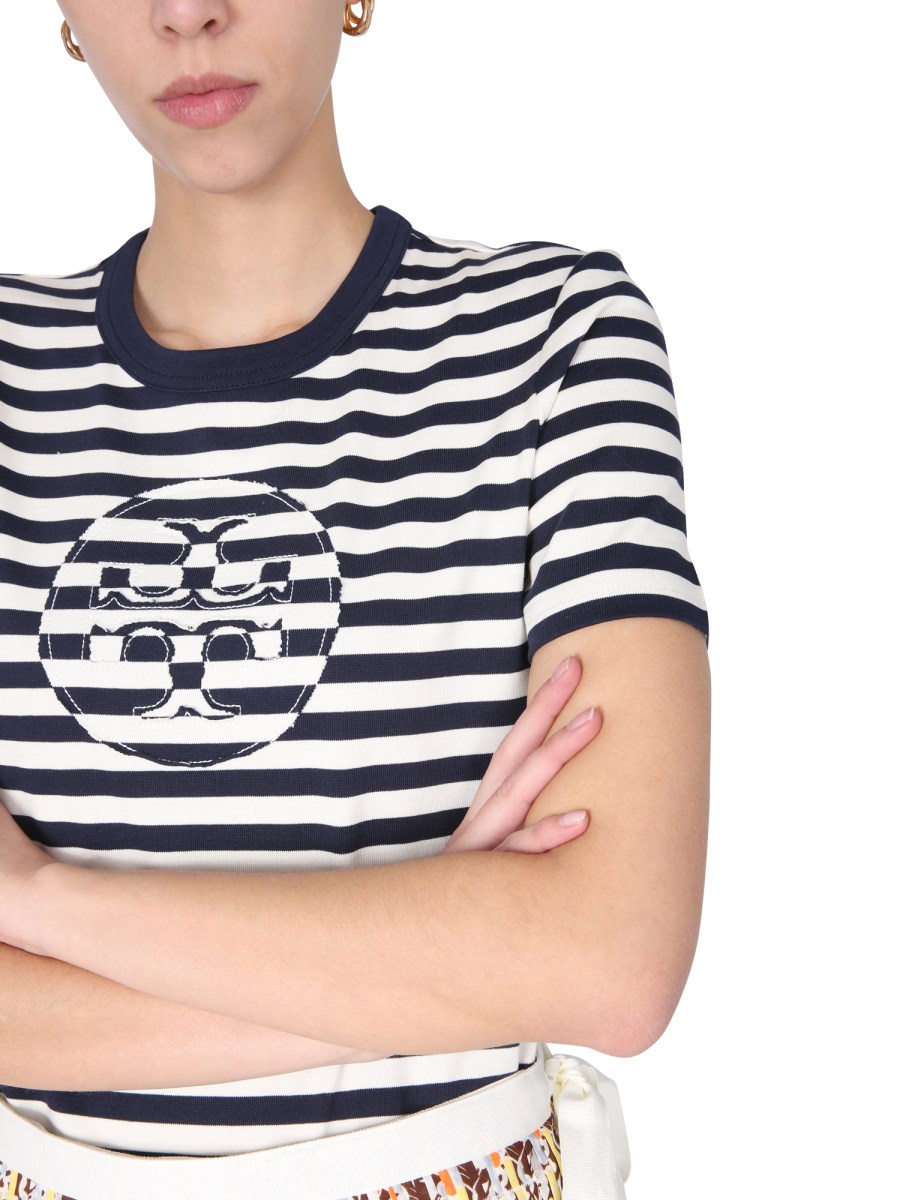 - GIROCOLLO- MOTIVO A RIGHE- DOPPIA T APPLICATA - REGULAR FIT- 100% COTONE - LA MODELLA È ALTA 180 CM E INDOSSA LA TAGLIA S