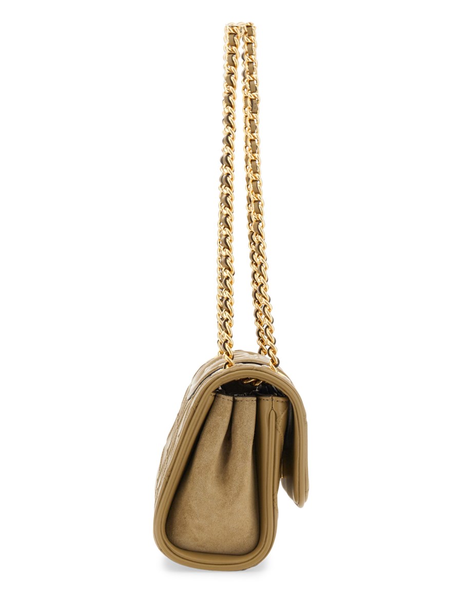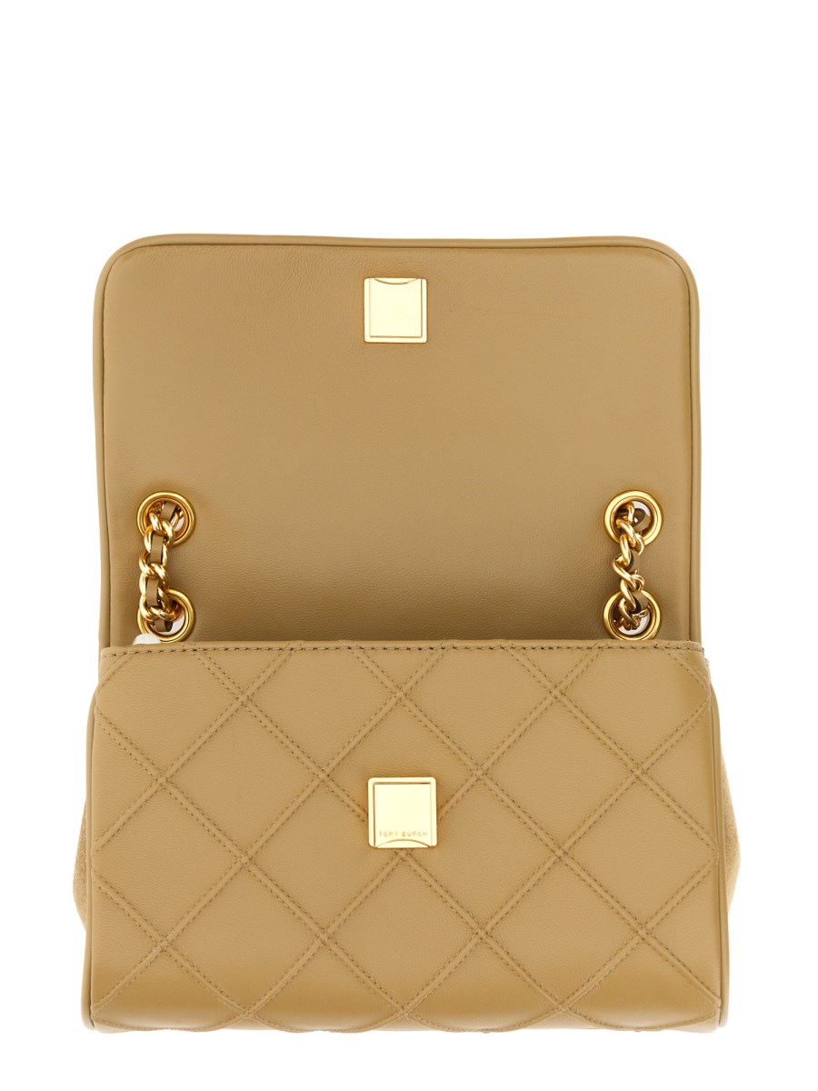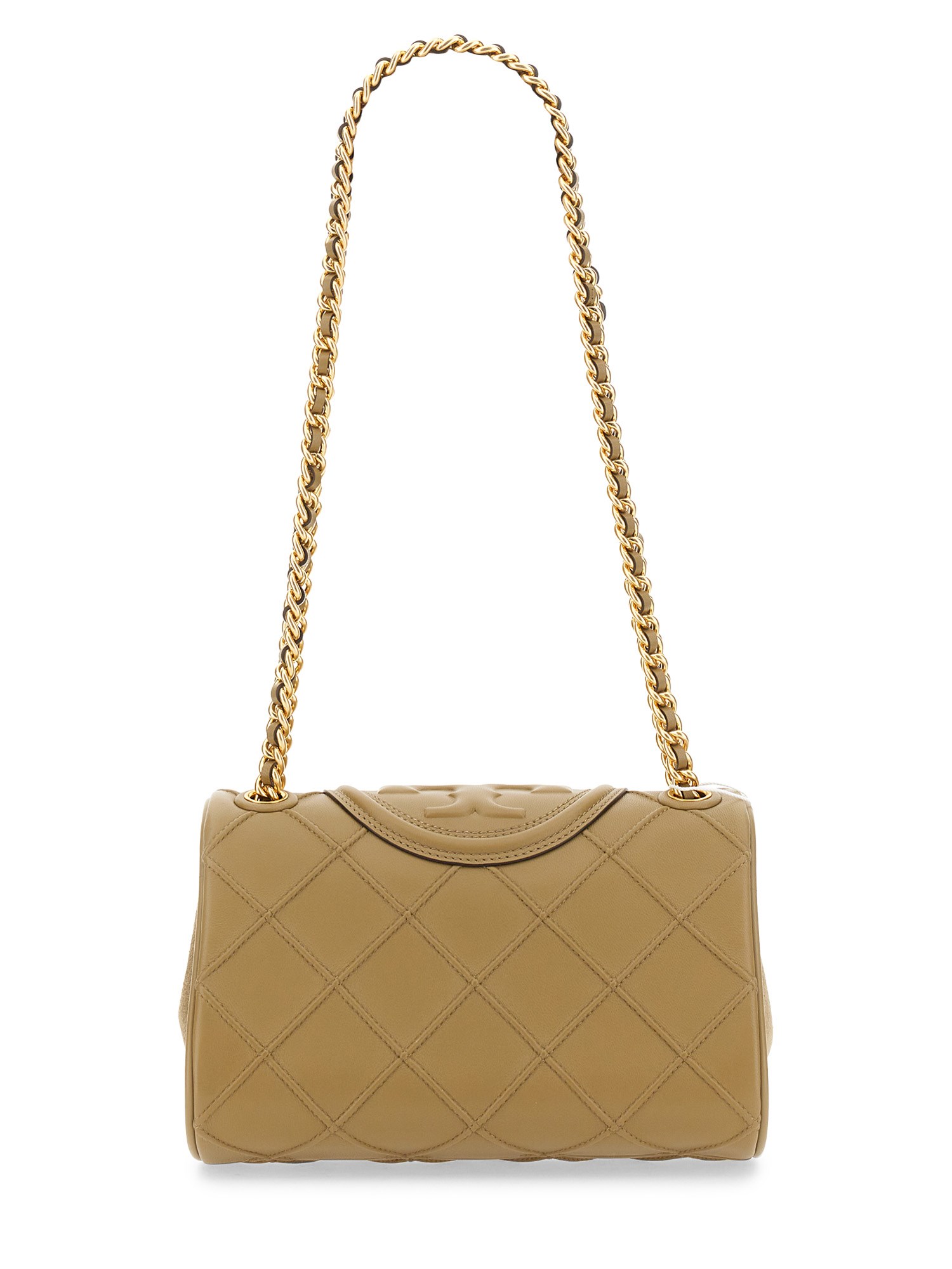 Una classica borsa in pelle di Tory Burch con un elegante logo in rilievo sul pannello superiore. Questa borsa nera è dotata di manico superiore, chiusura magnetica e motivo trapuntato sul fronte e sul retro. Ha un interno foderato e misura 14,5 cm x 22 cm x 8 cm.