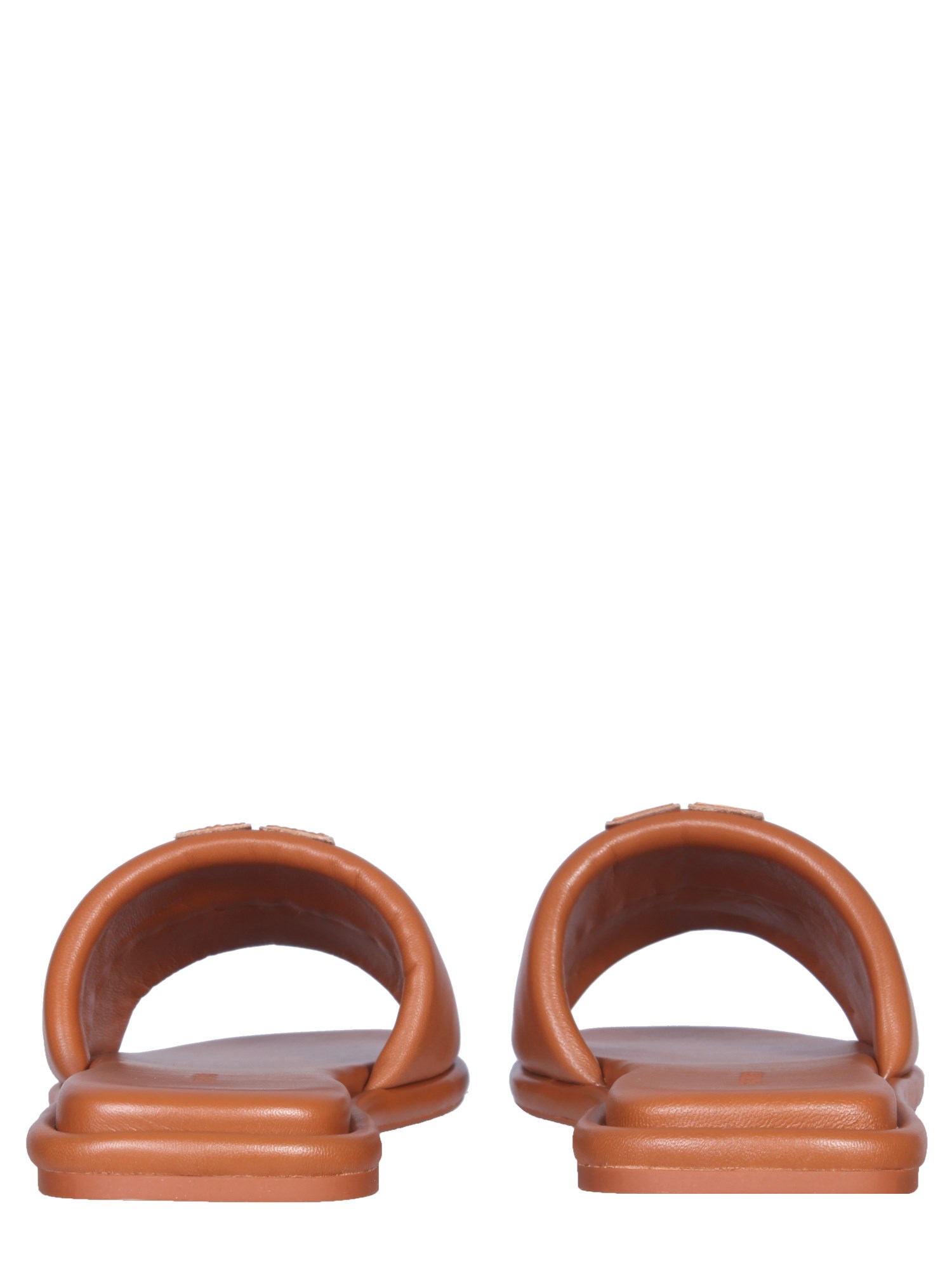 Quando siete in movimento e avete bisogno di qualcosa di più comodo di una scarpa standard, indossate le Double T Sports Slider Sandal della maison Tory Burch. Queste scarpe hanno una grande quantità di ammortizzazione e sostegno con una suola resistente che non cadrà a pezzi dopo pochi utilizzi. Presentano una suola rivestita e imbottita in nappa e un fondo in gomma.