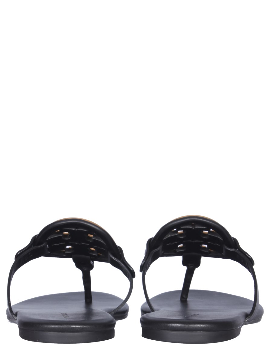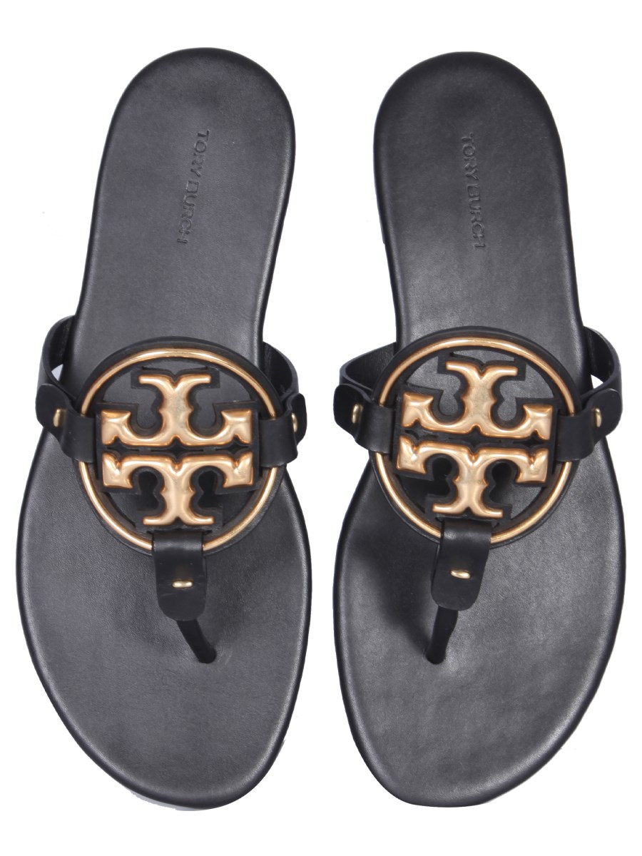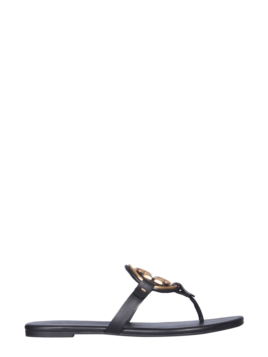 La costruzione di questo sandalo in pelle "Metal Miller" della maison Tory Burch è pensata per essere una scarpa elegante e comoda. È perfetto sia per il giorno che per la sera. Questi sandali slip-on hanno una tomaia in pelle con logo in metallo. I sandali slip-on sono dotati di una suola in gomma resistente e comoda.