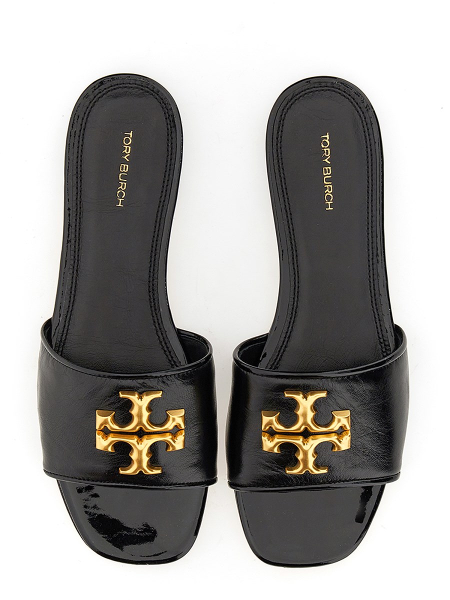 I sandali Tory Burch hanno uno stile classico e sono progettati con una tomaia in pelle resistente e un sandalo slide con logo in metallo. Questi sandali eleganti e comodi sono le scarpe perfette da indossare con qualsiasi vestito. Questo tipo di scarpa è la combinazione perfetta di moda e funzionalità.